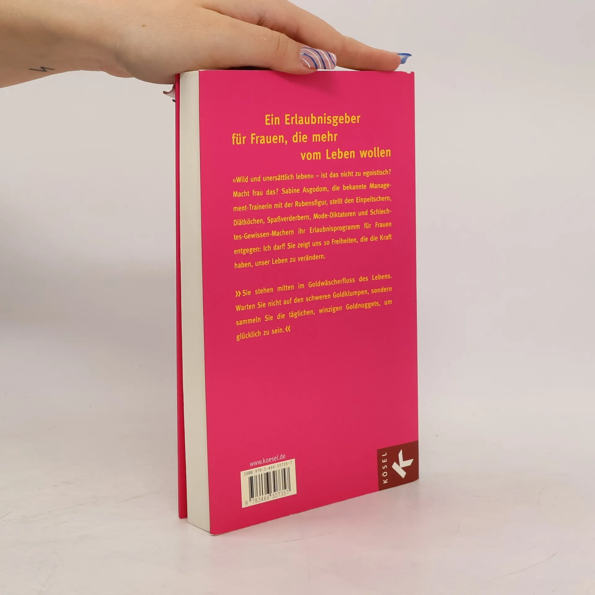 Ein Erlaubnisgeber für Frauen, die mehr vom Leben wollen Schluss mit dem Trendterror und der ständigen Verunsicherung. Schluss mit dem Vermiesen und Verbieten, mit dem Verkleiden und Verbiegen. Sabine Asgodom, die bekannte Management-Trainerin mit der Rubensfigur, stellt den Einpeitschern, Diätköchen und Schlechtes-Gewissen-Machern ihr Erlaubnis-Programm für Frauen entgegen: Du darfst! »Sei du selbst und hab Spaß dabei« – lautet die Botschaft ihres neuen Buches, das das Leben vieler Frauen verändern wird. Es gibt keine Autorität, die uns vorschreiben kann, wie wir zu leben haben. »Sei du selbst und hab Spaß dabei!« lautet die Botschaft von Deutschlands bekanntester Management-Trainerin Sabine Asgodom. Ihr neues Erlaubnisprogramm für Frauen heißt: Du darfst.