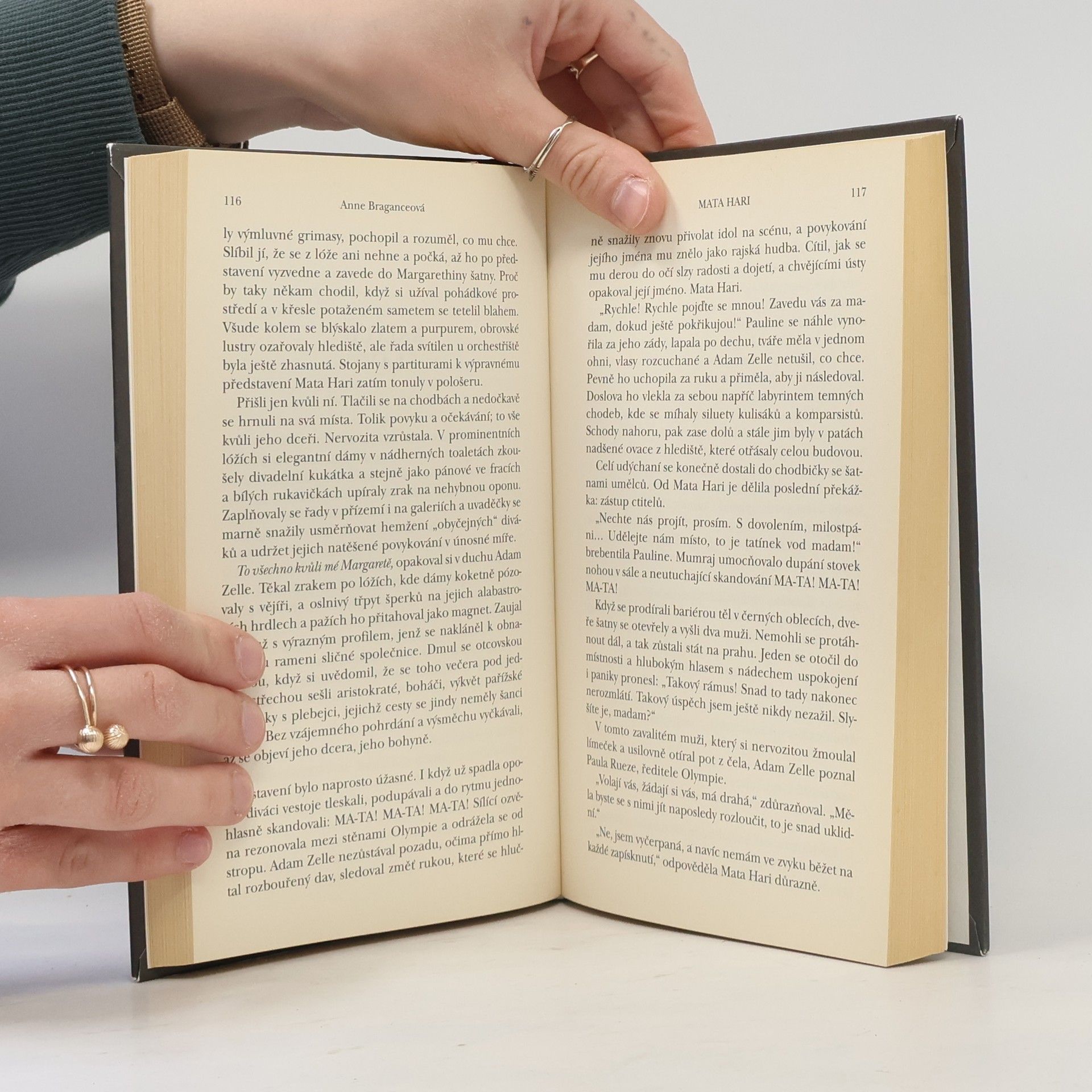 Tajemná dáma v srdci první světové války. Tak dlouho o sobě spřádala legendy, až se sama stala legendou… Mata Hari… jméno, které se stalo synonymem špionky. Osud tak neuvěřitelný, že prostý životopis působí fantastičtěji než vymyšlený příběh. „Rychle mě obejměte, polibte a nechte mě. Stoupněte si po mé pravici. Budu se na vás dívat. Sbohem.“ To jsou poslední slova, která Mata Hari pronesla, když 15. října 1917 stanula před popravčí četou. Co tomu ale předcházelo? Kde začala a kudy vedla její spletitá, neuvěřitelná cesta? Jak se z chudého nizozemského děvčátka s obyčejným jménem Margaretha Zelleová stala mysteriózní tanečnice Mata Hari, milenka mnoha významných mužů, špionka a nakonec odsouzenkyně na smrt? Ve zlaté éře, belle époque, pobláznila celou Paříž, zlomila mnohá srdce a její jméno letělo od úst k ústům. Všichni uvěřili, že je Orientálka a chrámová služebnice bohů, všichni podlehli jejím barvitým mystifikacím. Autorce se podařilo napsat životopisný román s nejvyšším respektem k historickým faktům, ale současně nesmírně niterný a strhující. Vyprávění v přítomném čase, překrásným, lehce archaickým jazykem, působí dojmem, jako bychom se vskutku ocitli na počátku minulého století a jako by se to všechno – události bizarní, komické i tragické – odehrávalo přímo teď, přímo před námi…