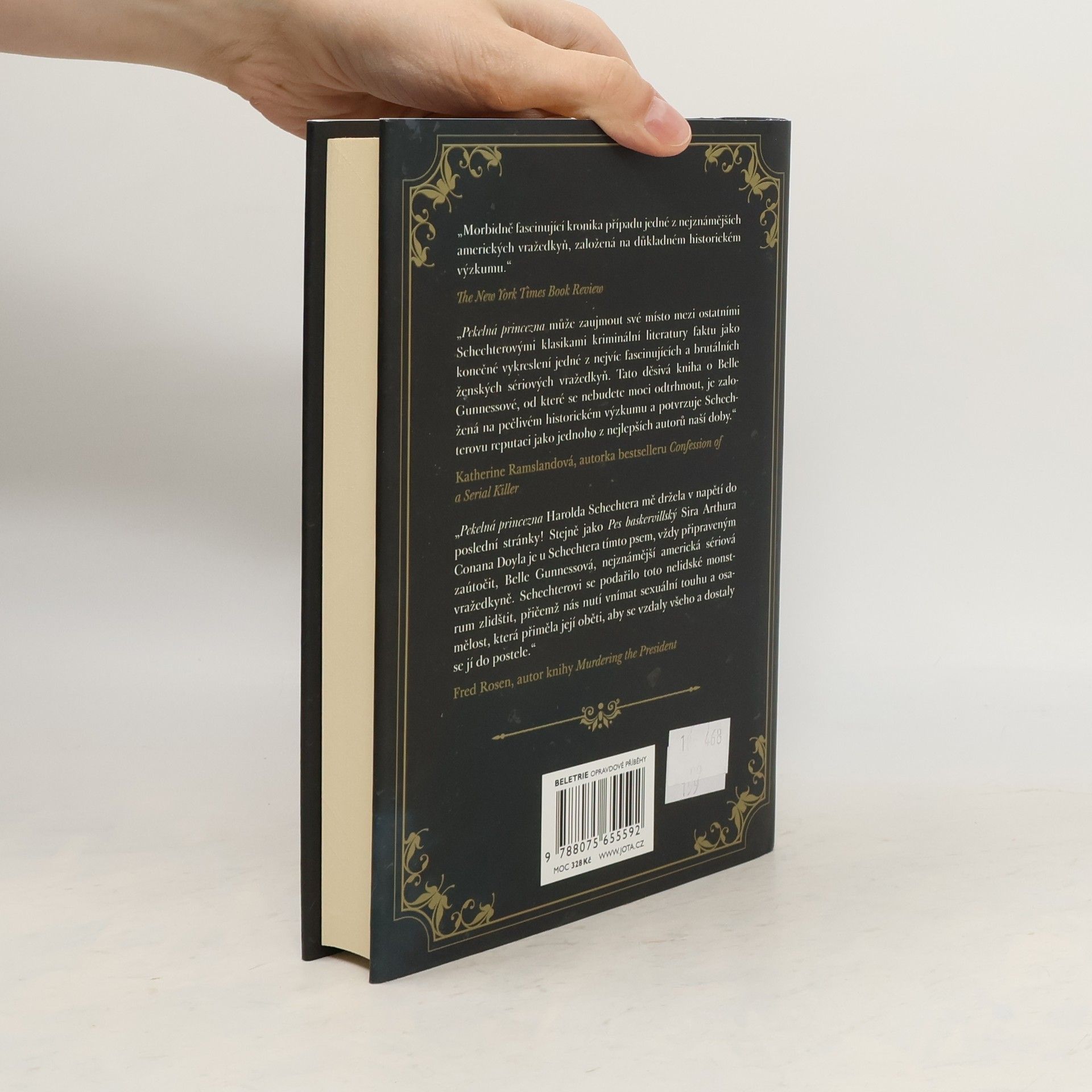 V panteonu sériových vrahů zaujímá Belle Gunnessová jedinečné místo. Byla to všemu se vymykající psychopatka, žena, která vraždila ve velkém, zčásti z chamtivosti, ale hlavně z čirého potěšení. Mezi lety 1902 a 1908 nalákala na svou „vražednou farmu v Indianě“ řadu nic netušících obětí. Někteří byli nájemní dělníci. Jiní nic netušící staří mládenci. Všichni zmizeli beze stopy. Poté, co byla jejich těla vykopána, se zjistilo, že byli nejen otráveni, jako oběti jiných vražedkyň, ale byli také doslova poraženi jako na jatkách. Pekelná princezna je strhující popis jednoho z nejsenzačnějších řádění masového vraha v análech amerického zločinu: šokující série vražd spáchaných ženou, která vešla ve známost jako Lady Modrovousová. Napínavá a poutavě napsaná kniha Harolda Schechtera je jediným autoritativním popisem tohoto notoricky známého případu a první, která o tématu, jež v sobě nese veškeré prvky klasického záhadného příběhu a děsivé hororové zvraty, přinesla dosud neznámé informace.