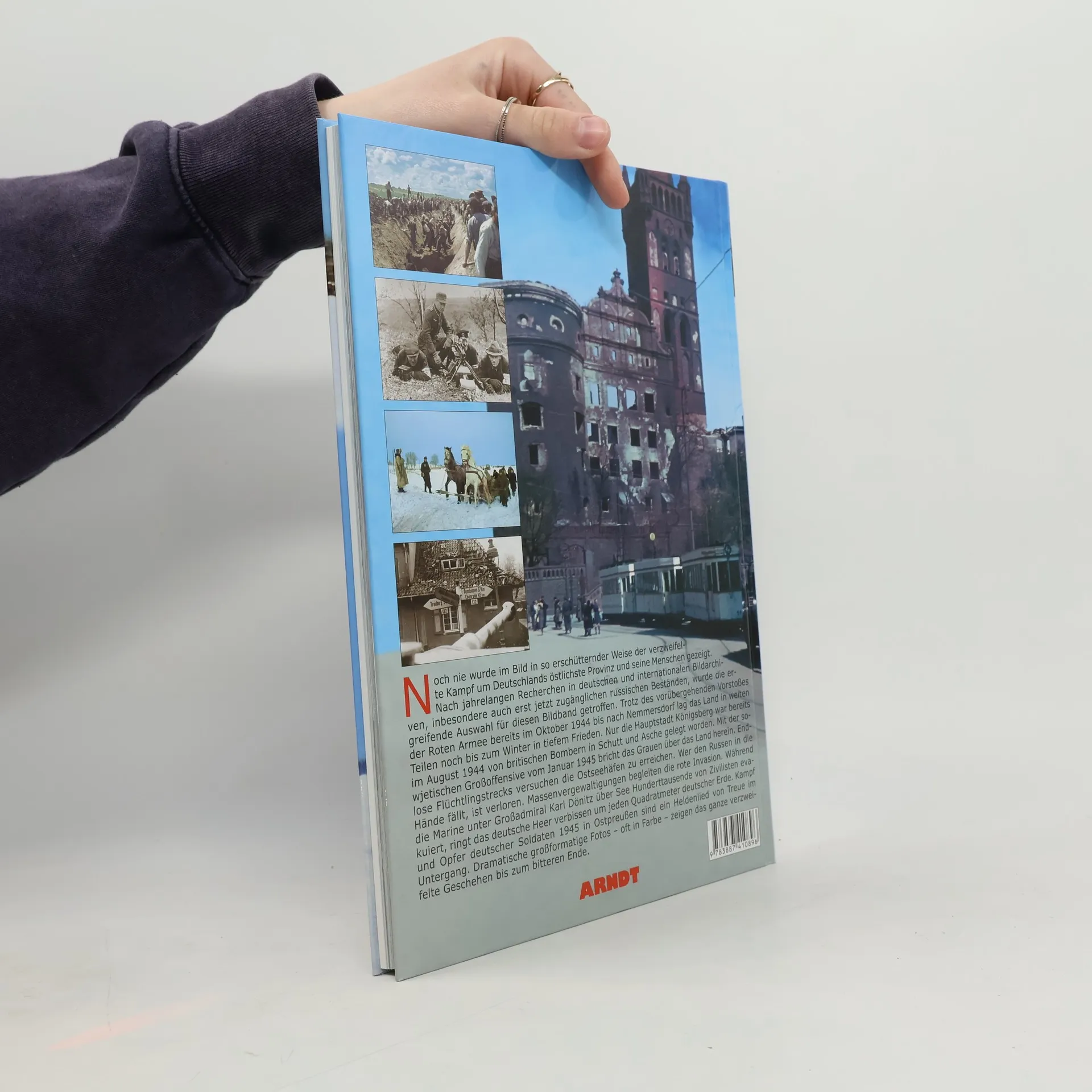 Noch nie wurde im Bild in so erschütternder Weise der verzweifelte Kampf um Deutschlands östlichste Provinz und seine Menschen gezeigt. Mit der sowjetischen Großoffensive vom Januar 1945 bricht das Grauen über das Land herein. Endlose Flüchtlingstrecks versuchen die Ostseehäfen zu erreichen. Wer den Russen in die Hände fällt, ist verloren. Während die Marine unter Großadmiral Dönitz über See Hunderttausende von Zivilisten evakuiert, ringt das deutsche Heer verbissen um jeden Quadratmeter deutscher Erde. Dramatische großformatige Fotos, oft in Farbe, zeigen das ganze verzweifelte Geschehen bis zum bitteren Ende.