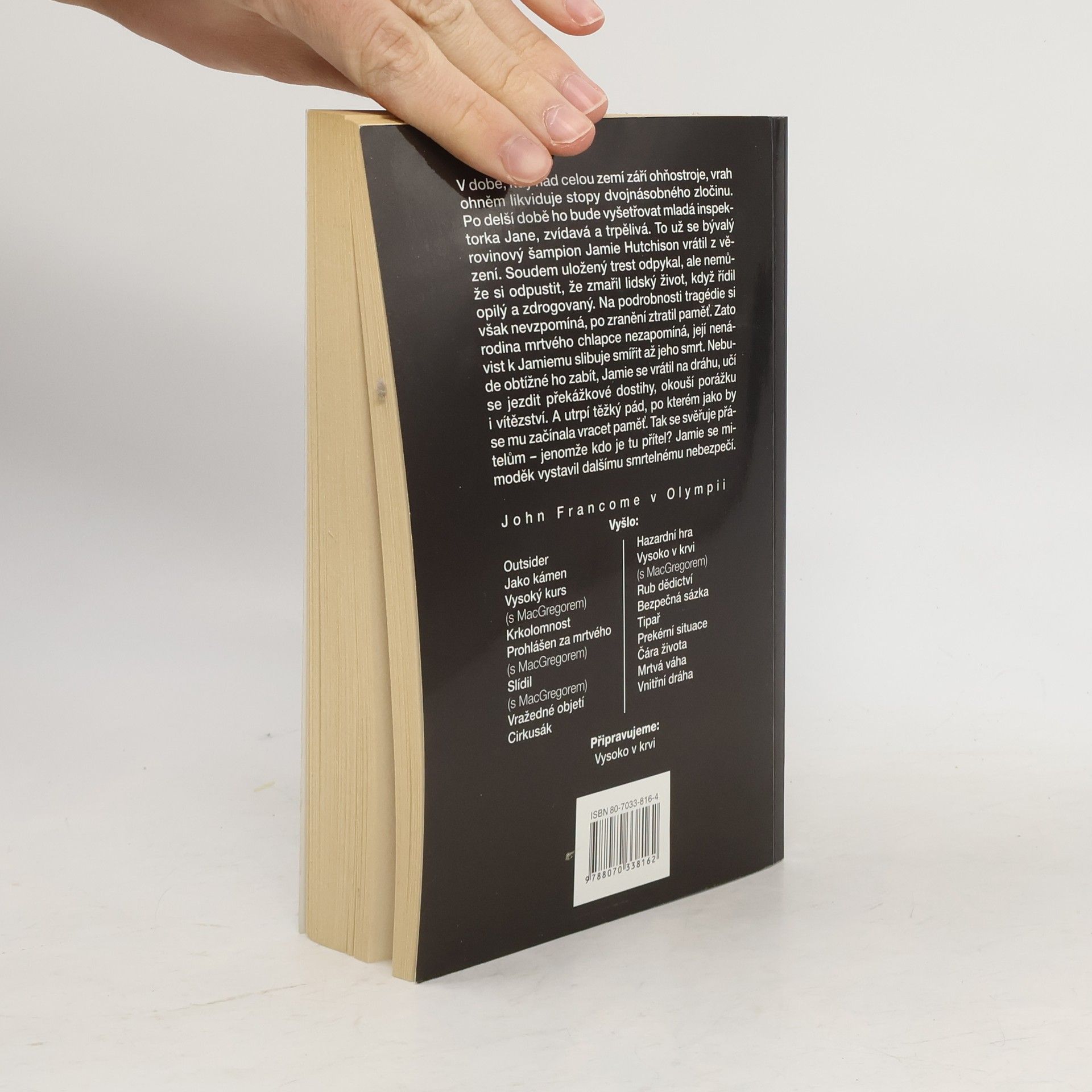 V době, kdy nad celou zemí září ohňostroje, vrah ohněm likviduje stopy dvojnásobného zločinu. Po delší době ho bude vyšetřovat mladá inspektorka Jane, zvídavá a trpělivá. To už se bývalý rovinový šampion Jamie Hutchison vrátil z vězení. Soudem uložený trest odpykal, ale nemůže si odpustit, že zmařil lidský život, když řídil opilý a zdrogovaný. Na podrobnosti tragédie si však nevzpomíná, po zranění ztratil paměť. Zato rodina mrtvého chlapce nezapomíná, její nenávist k Jamiemu slibuje smířit až jeho smrt. Nebude obtížné ho zabít, Jamie se vrátil na dráhu, učí se jezdit překážkové dostihy, okouší porážku i vítězství. A utrpí těžký pád, po kterém jako by se mu začínala vracet paměť. Tak se svěřuje přátelům - jenomže kdo je tu přítel? Jamie se mimoděk vystavil dalšími smrtelnému nebezpečí.