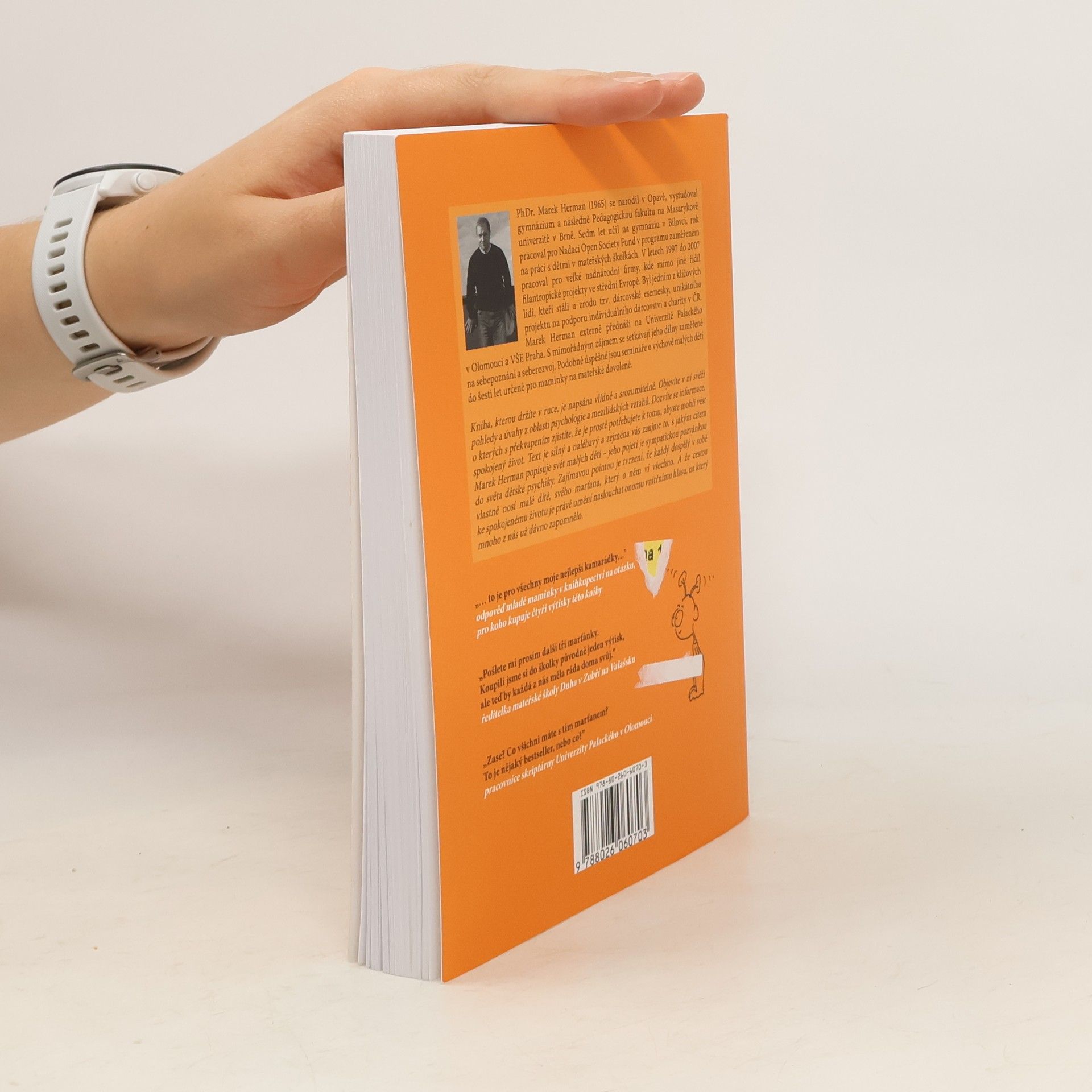 Kniha je cenná hlavně tím, že je napsána odborně, přitom naprosto srozumitelně, autor si s pomyslným čtenářem vlastně povídá. Objevíte v ní svěží pohledy a úvahy z oblasti sebepoznání, mezilidských vztahů a výchovy malých dětí. Dozvíte se informace, o kterých s překvapením zjistíte, že je prostě potřebujete k tomu, abyste mohli vést spokojený život. Text v knize je silný a místy až naléhavý a zejména vás zaujme to, s jakým citem Marek Herman popisuje svět malých dětí.
