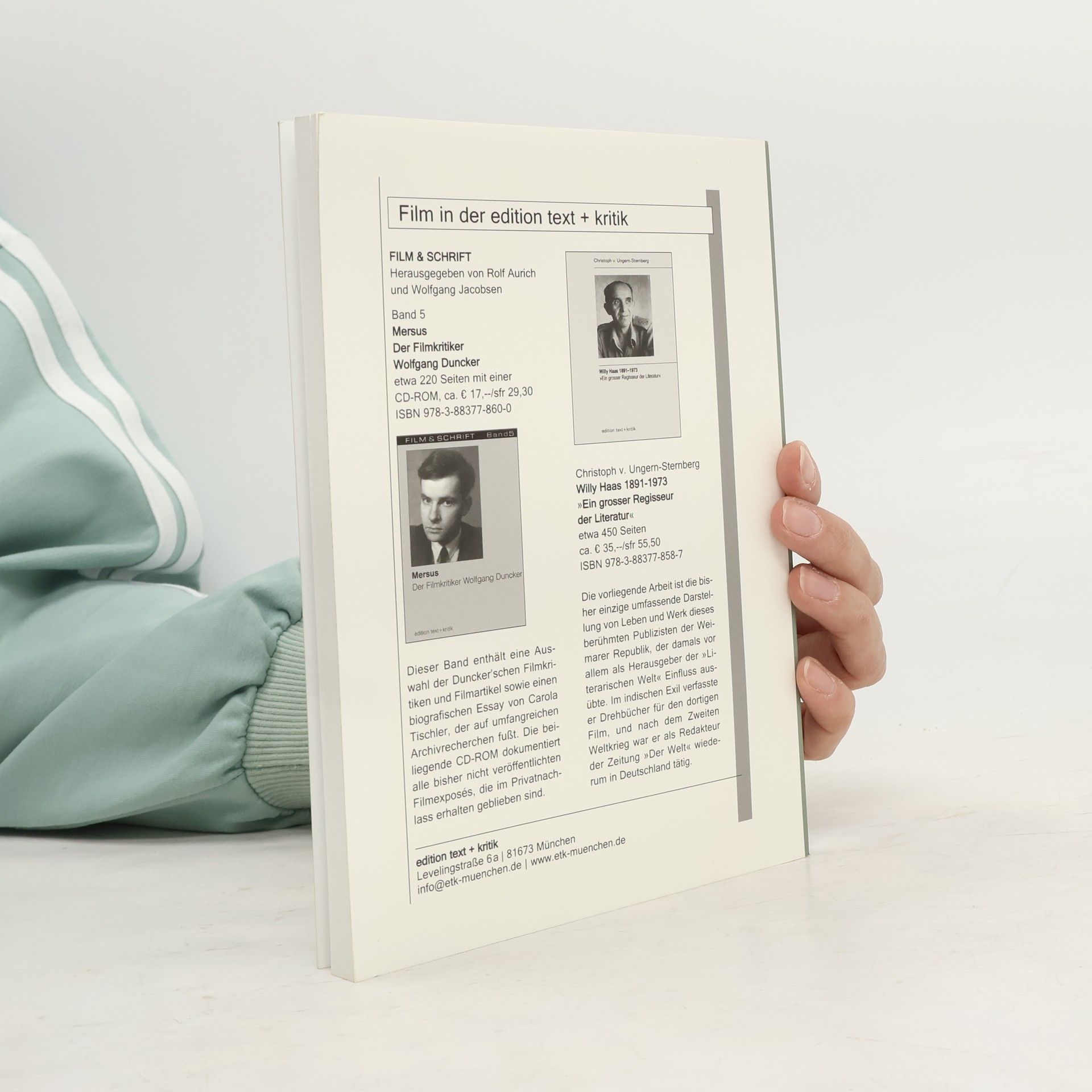 Im November 1929 wird Wolfgang Duncker (1909-1942) bei der Münzenberg Zeitung „Berlin am Morgen“ als Film- und Theaterkritiker sowie als Verantwortlicher für die Unterhaltungsbeilage eingestellt. Als Sohn der prominenten KPD-Gründungsmitglieder Käte und Hermann Duncker und seit 1929 selbst KPD-Mitglied, schreibt er bis 1933 Hunderte von Artikeln zu Film, Theater und Literatur – alle unter dem Pseudonym Mersus. In seinen Arbeiten spiegeln sich sowohl die Diskussionen zum Film in dieser Zeit als auch der Enthusiasmus eines jungen Mannes für ein junges Medium. 1933 versucht Duncker vergeblich, in der Schweiz und in Frankreich Arbeit zu finden. Entmutigt kehrt er im Herbst 1934 nach Berlin zurück, aber auch dort verlaufen seine Bemühungen erfolglos. Als letztes Exilland bleibt die Sowjetunion, wo es ihm 1935 sofort gelingt, beim Film unterzukommen. Während des Stalin’schen Terrors 1938 zu acht Jahren Haft verurteilt, stirbt Duncker 1942 entkräftet in einem sowjetischen Lager. Der Band enthält eine Auswahl der Duncker’schen Filmkritiken und Filmartikel sowie einen biografischen Essay von Carola Tischler, der auf umfangreichen Archivrecherchen fußt. Die beiliegende CD-ROM dokumentiert alle bisher nicht veröffentlichten Filmexposés, die im Privatnachlass erhalten geblieben sind.