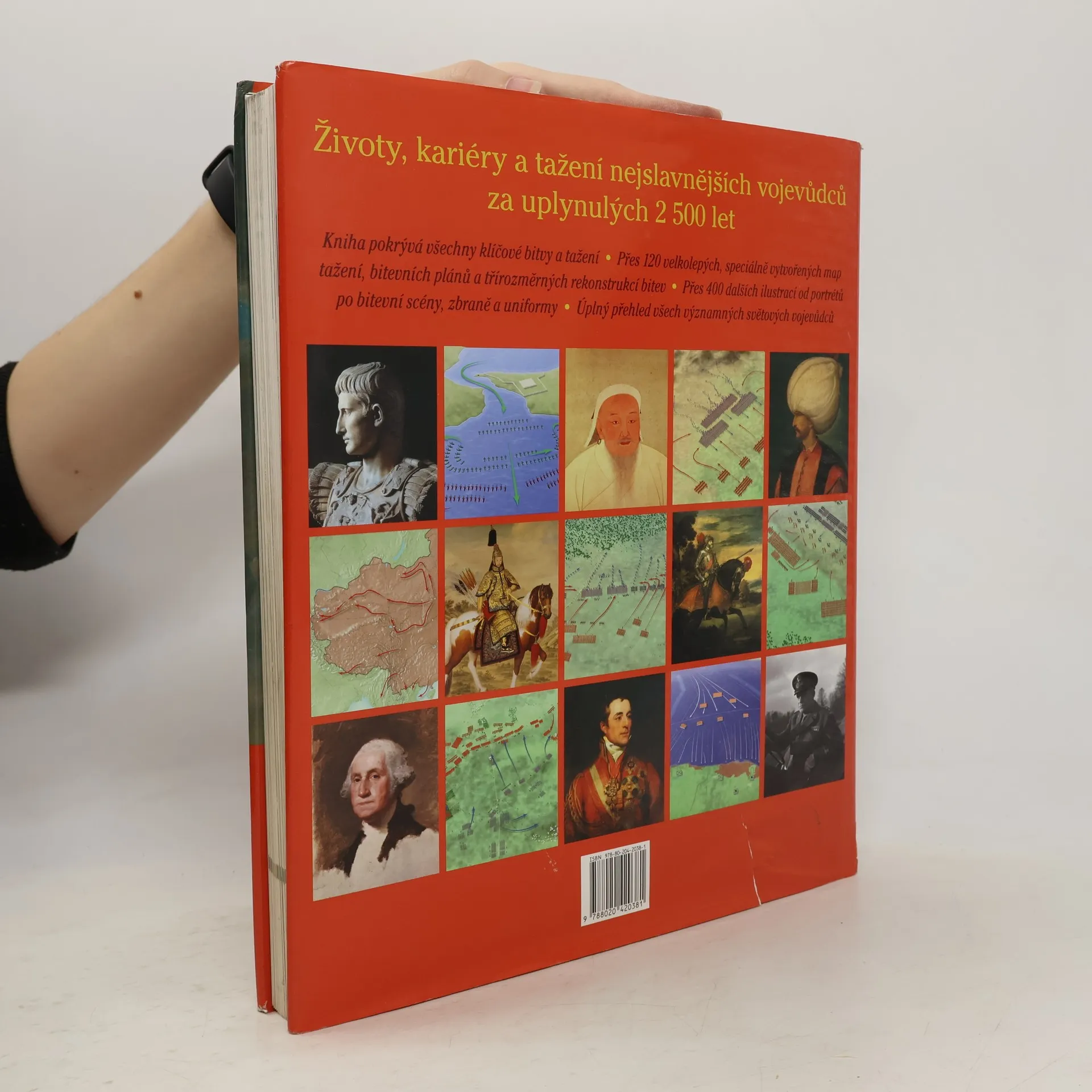 Velkolepý přehled osudů a kariér nejproslulejších vojevůdců od perského Kýra Velikého v 6. století př. n. l. po Vo Nguyen Giapa ve Vietnamu ve 20. století v podání špičkových historiků a vojenských odborníků z celého světa. Unikátní projekt se skutečně globálním záběrem – od Číny přes Indii po Afriku a od Evropy po Severní a Jižní Ameriku – se podrobně věnuje více než stovce nejdůležitějších vojenských vůdců, zatímco závěrečný abecední přehled zvyšuje celkový počet představených významných postav vojenské historie na úctyhodných dvě stě padesát. Bohatý obrazový doprovod tvoří dobové portréty a fotografie, vyobrazení bitevních scén, ukázky zbraní a uniforem i víc než 120 speciálně pro tuto publikaci vytvořených barevných map tažení, bitevních plánů a třírozměrných rekonstrukcí bitev. Jde o nepostradatelnou publikaci pro každého zájemce o vojenskou historii.