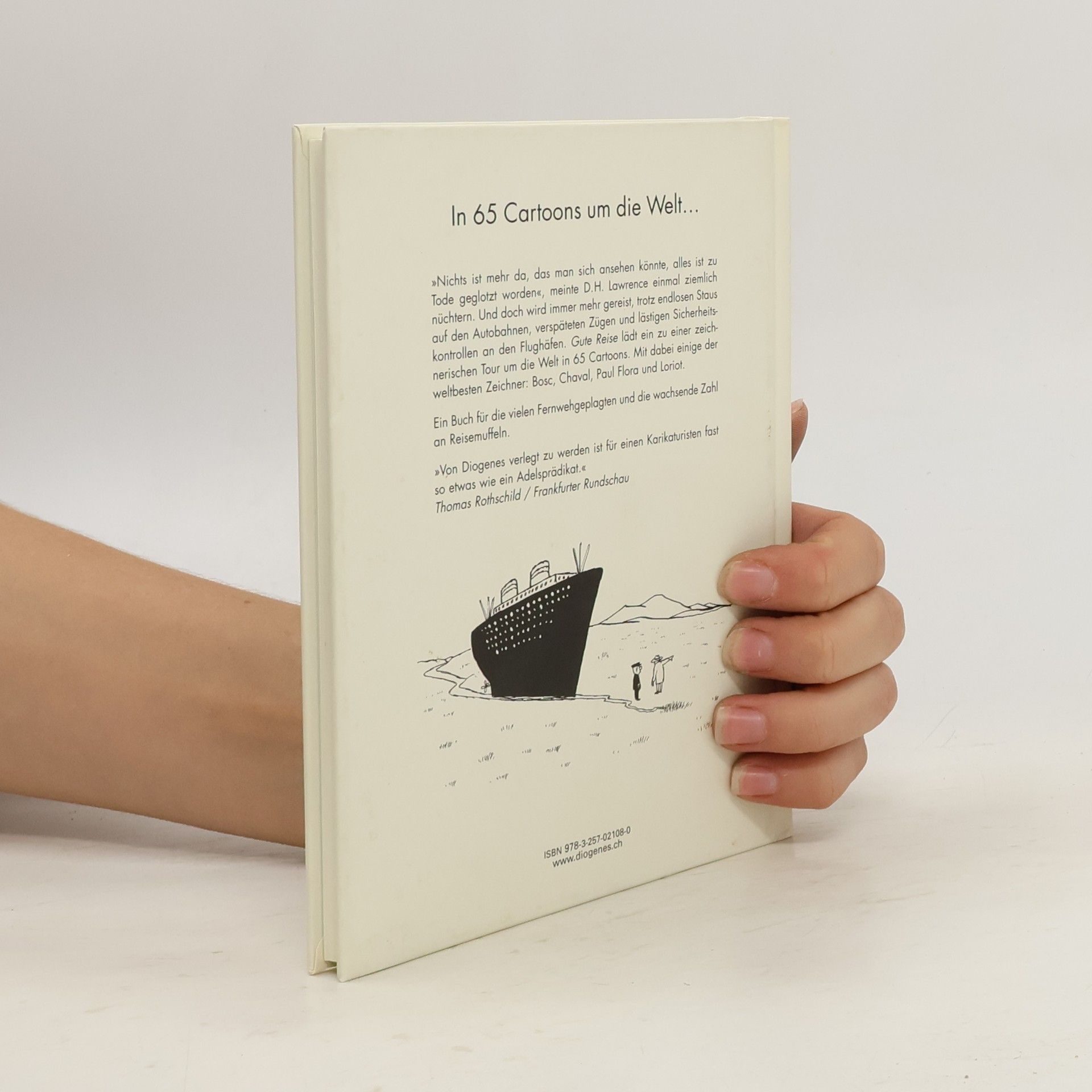 „Nichts ist mehr da, das man sich ansehen könnte, alles ist zu Tode geglotzt worden“, meinte D. H. Lawrence einmal ziemlich nüchtern. Und doch wird immer mehr gereist, trotz endlosen Staus auf den Autobahnen, verspäteten Zügen und lästigen Sicherheitskontrollen an den Flughäfen. Gute Reise lädt ein zu einer zeichnerischen Tour um die Welt in 80 Cartoons. Mit dabei die weltbesten Zeichner: Chaval, Paul Flora, Loriot, Bosc, Tomi Ungerer, Jean-Jacques Sempé und F. K. Waechter. Ein Buch für die vielen Fernwehgeplagten und die wachsende Zahl an Reisemuffeln.