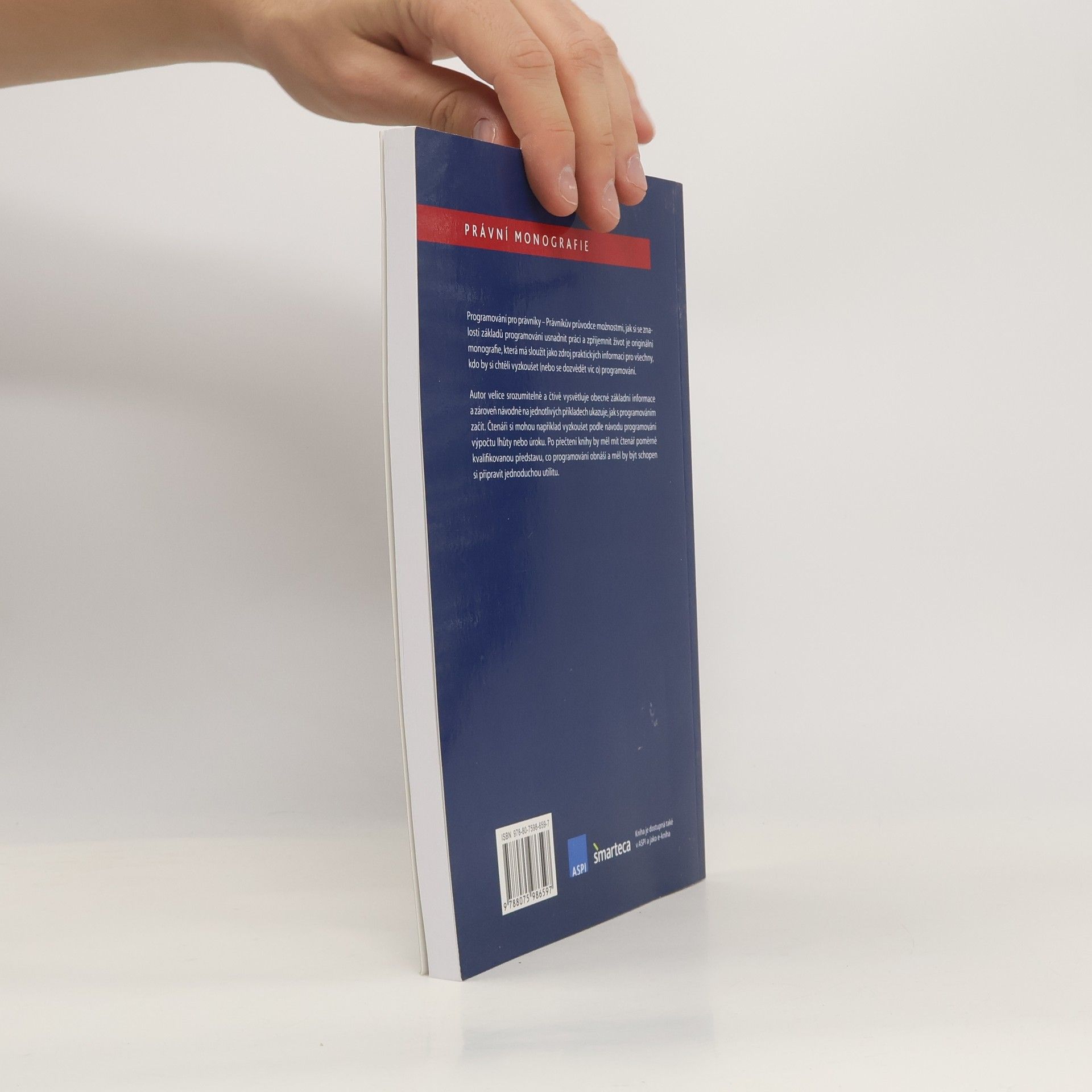 Programování pro právníky – Právníkův průvodce možnostmi, jak si se znalostí základů programování usnadnit práci a zpříjemnit život je originální monografie, která má sloužit jako zdroj praktických informací pro všechny, kdo by si chtěli vyzkoušet (nebo se dozvědět víc o) programování. Autor velice srozumitelně a čtivě vysvětluje obecné základní informace a zároveň návodně na jednotlivých příkladech ukazuje, jak s programováním začít. Čtenáři si mohou například vyzkoušet podle návodu programování výpočtu lhůty nebo úroku. Po přečtení knihy by měl mít čtenář poměrně kvalifikovanou představu, co programování obnáší a měl by být schopen si připravit jednoduchou utilitu.