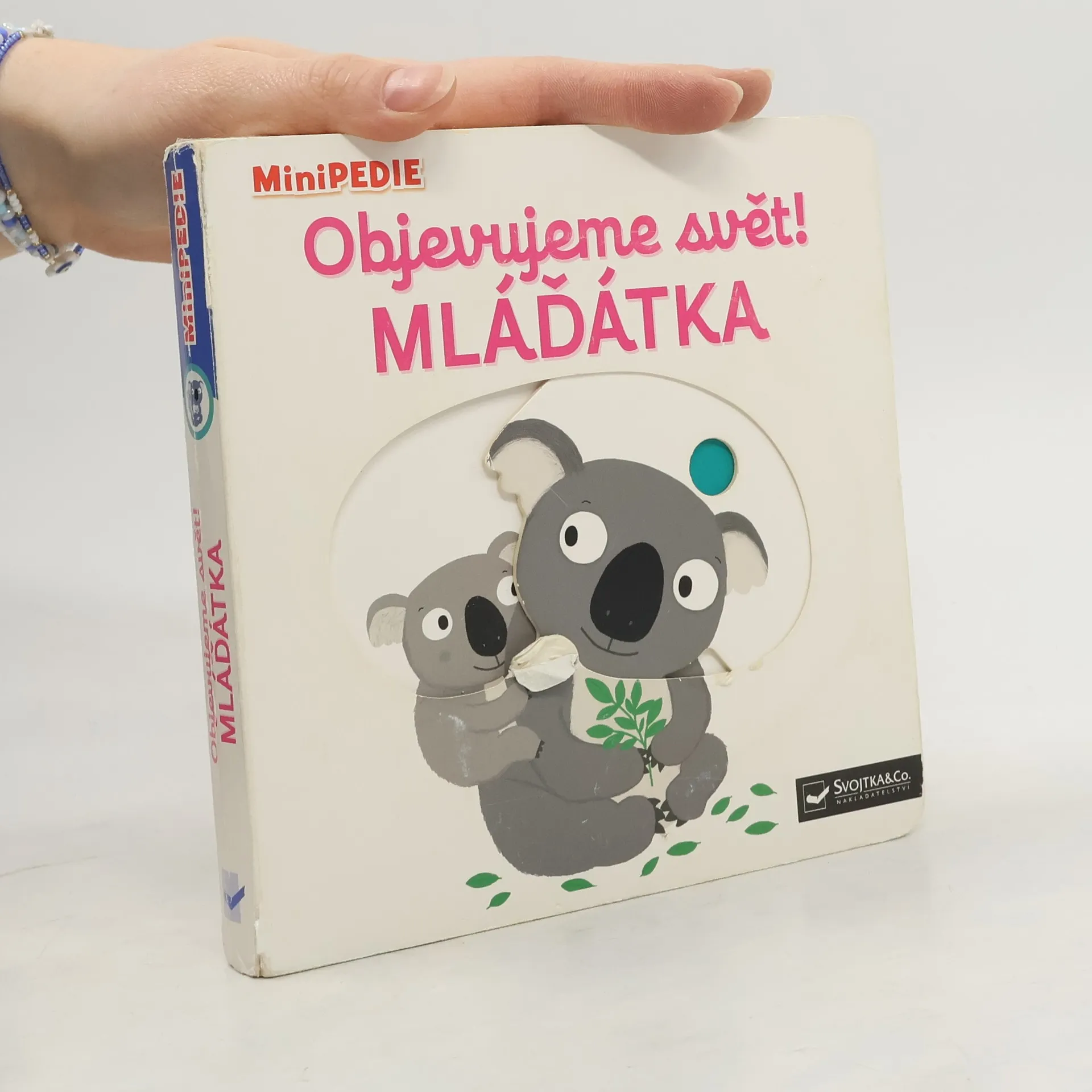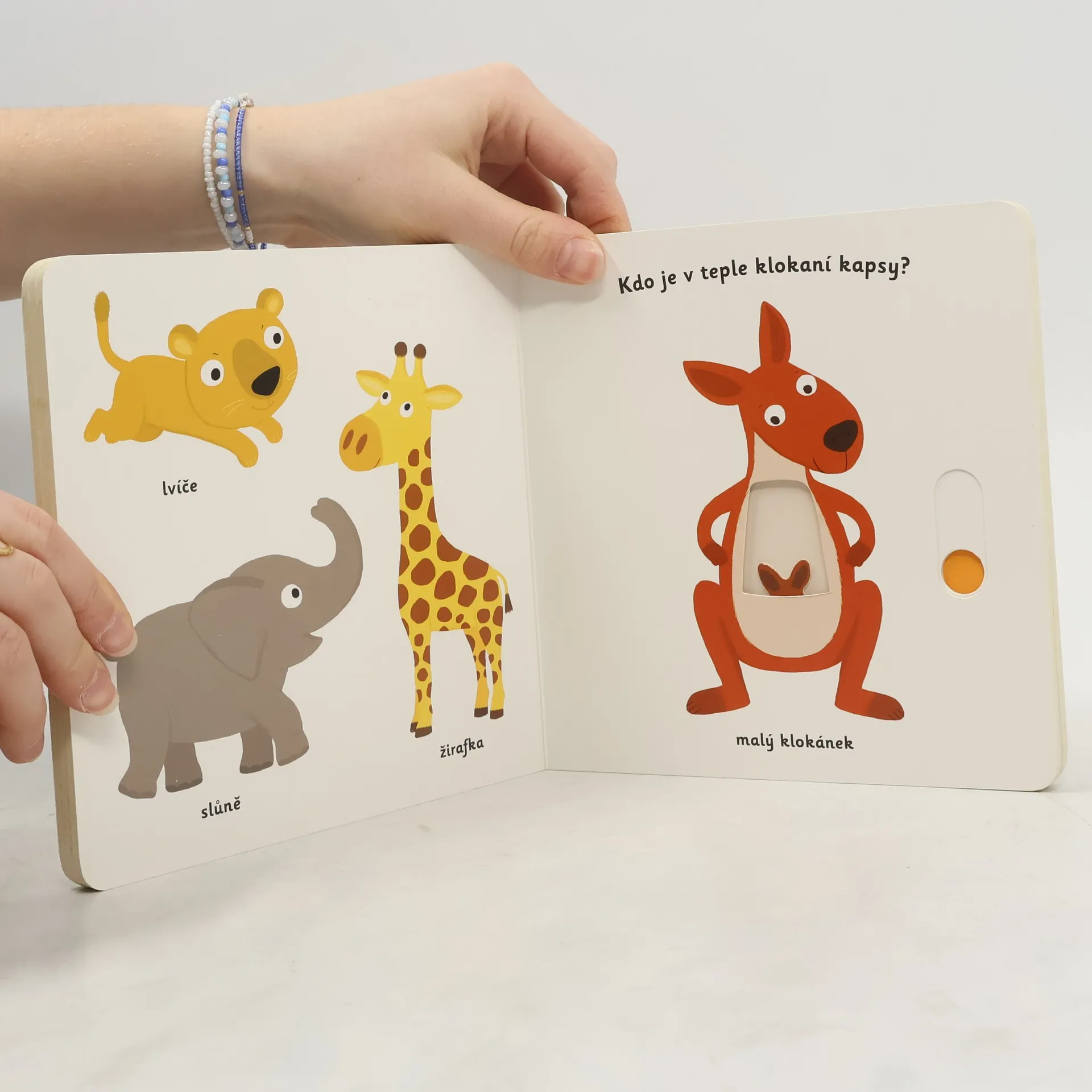 Objevovat svět zvířátek a jejich mláďátek je s tímto leporelem tak zábavné! Kdo si hraje u maminky kočky? Kdo se vylíhne z vajíček maminky slepice? Kdo je v teple klokaní kapsy? Kdo se prochází s tatínkem tučňákem? Stačí jen vložit prstík do správného otvoru, lehce posunout nebo otočit ve směru šipky a hned bude váš malý objevitel nebo objevitelka znát odpovědi. Leporelo je určeno pro nejmenší děti od jednoho roku a má pevné stránky s posuvnými prvky, a tak si naši nejmenší mohou při prohlížení a pojmenovávání procvičit i jemnou motoriku.