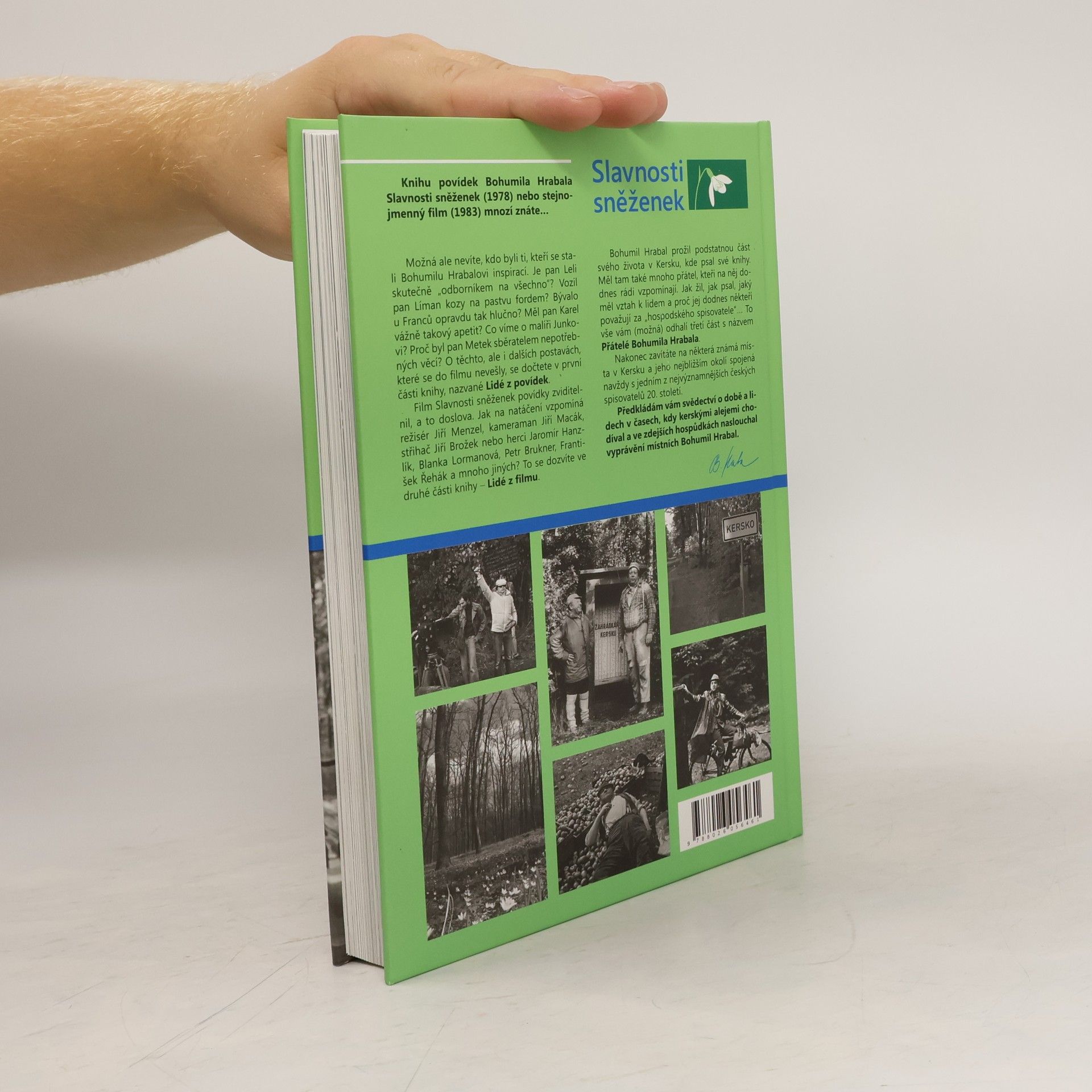V první části knihy nazvané Lidé z povídek se čtenář dozví o postavách z povídkové knihy Bohumila Hrabala Slavnosti sněženek. Druhá část Lidé z filmu přináší vzpomínky protagonistů filmu Jiřího Menzela a ve třetí části Přátelé Bohumila Hrabala se dočtete o jeho přátelích, o místech v Kersku, kde psal své knihy, o známých místech v okolí Kerska, spojených navždy s jedním z nejvýznamnějších spisovatelů 20. století.