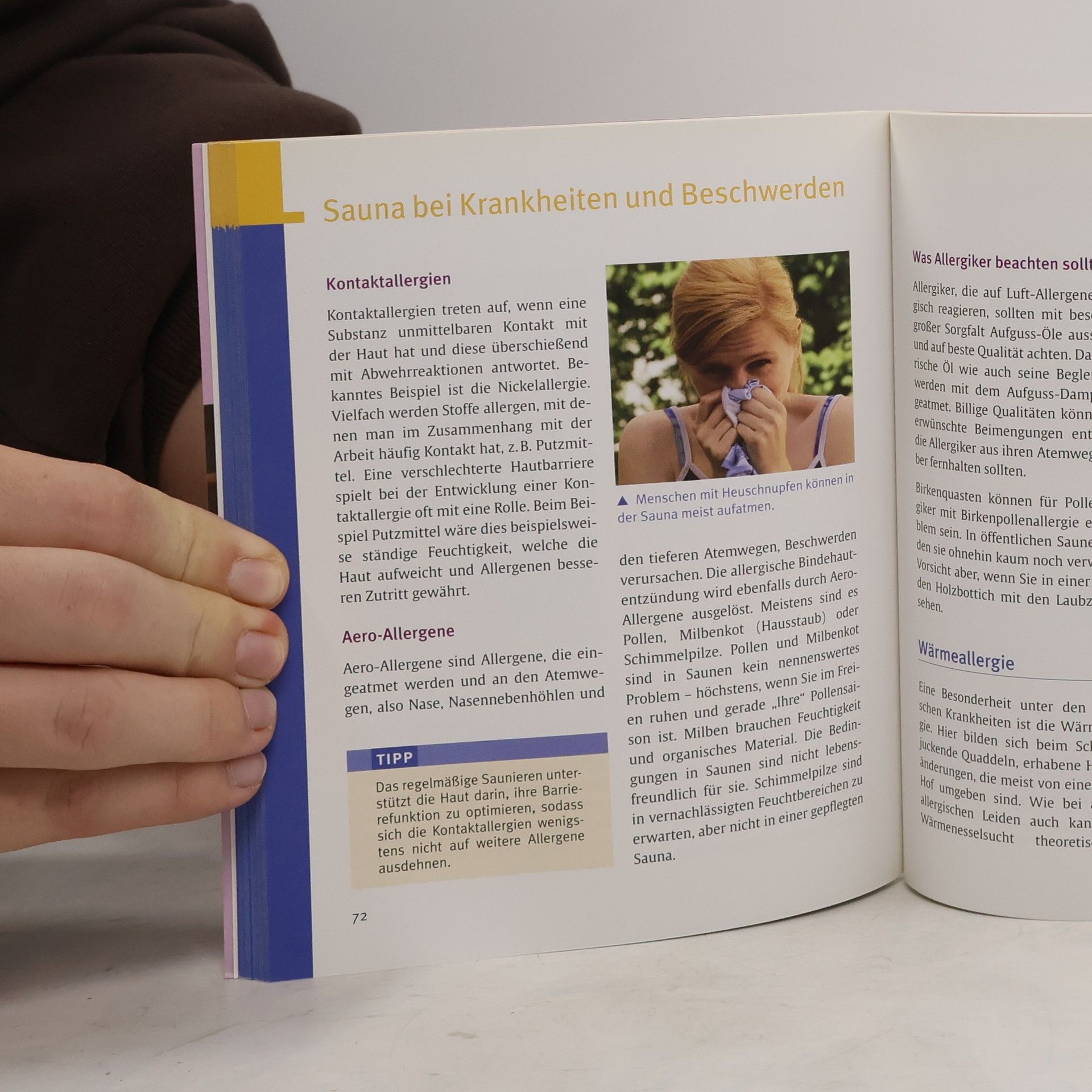 Sauna - ist das was für mich? Sie möchten die wohltuenden Wirkungen der Schwitzkur für Ihre Gesundheit nutzen. Der Kreislauf wird angeregt, das Immunsystem gestärkt, die Haut besonders gut durchblutet - man fühlt sich einfach wie neugeboren! Die Autorin, Ärztin und selbst leidenschaftliche Saunagängerin, bringt es auf den Punkt: Wie wirkt die Sauna und was läuft im Körper dabei ab? Saunieren, wie es zu Ihnen passt Wegen einer Vorerkrankung oder wegen Beschwerden sind Sie unsicher: Darf ich trotzdem in die Sauna? Beruhigend zu wissen: Bei vielen Krankheiten wie Bluthochdruck, Herzproblemen, Atem- und Gefäßerkrankungen sowie Allergien sind nur kleine Änderungen im gewohnten Sauna-Ablauf nötig. So sind Sie auf der sicheren Seite. Wärme für ein tolles Aussehen Hier finden Sie viele Tipps, wie Sie Ihren Sauna-Besuch zum einmaligen Wellness-Erlebnis machen: So entschlacken Sie und bringen Ihren Körper so richtig in Schwung. Mit tollen Verwöhn-Ideen für Haut und Haare: So nutzen Sie die wohlige Wärme auch für ein frisches und vitales Äußeres.