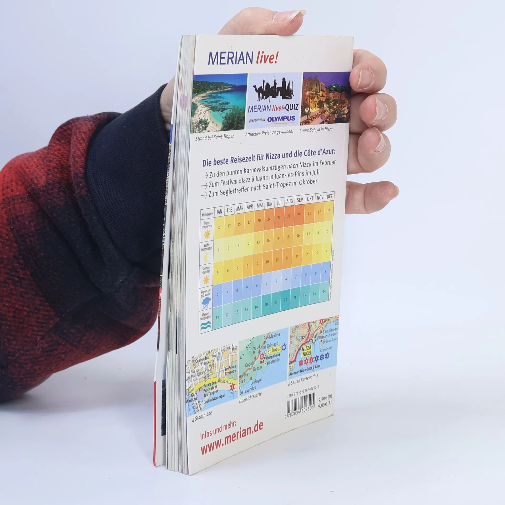 Vier aufregende Städte und eine traumhafte Landschaft locken an die Côte dAzur: Nizza mit seinen stilvollen Palästen der Belle Époque, Monaco, das steinerne Fürstentum am Meer, Cannes mit der berühmten Croisette und Staint-Tropez als Städtchen der Maler, Stars und Dichter. MERIAN live! bietet: - Fundierte Beschreibungen aller wichtigen Sehenswürdigkeiten und Museen - Sorgfältig ausgewählte Hotel- und Restaurantempfehlungen, Ausgeh- und Shoppingadressen sowie Tipps für Familien - Empfehlungen für den umweltbewussten Urlaub im Kapitel grüner reisen - 10 MERIAN-TopTen stellen die Höhepunkte der Städte vor - 10 MERIAN-Tipps führen zu den unbekannten Seiten der Städte - Doppelter Vorteil: Kartenatlas im Buch und Extra-Karte zum Herausnehmen