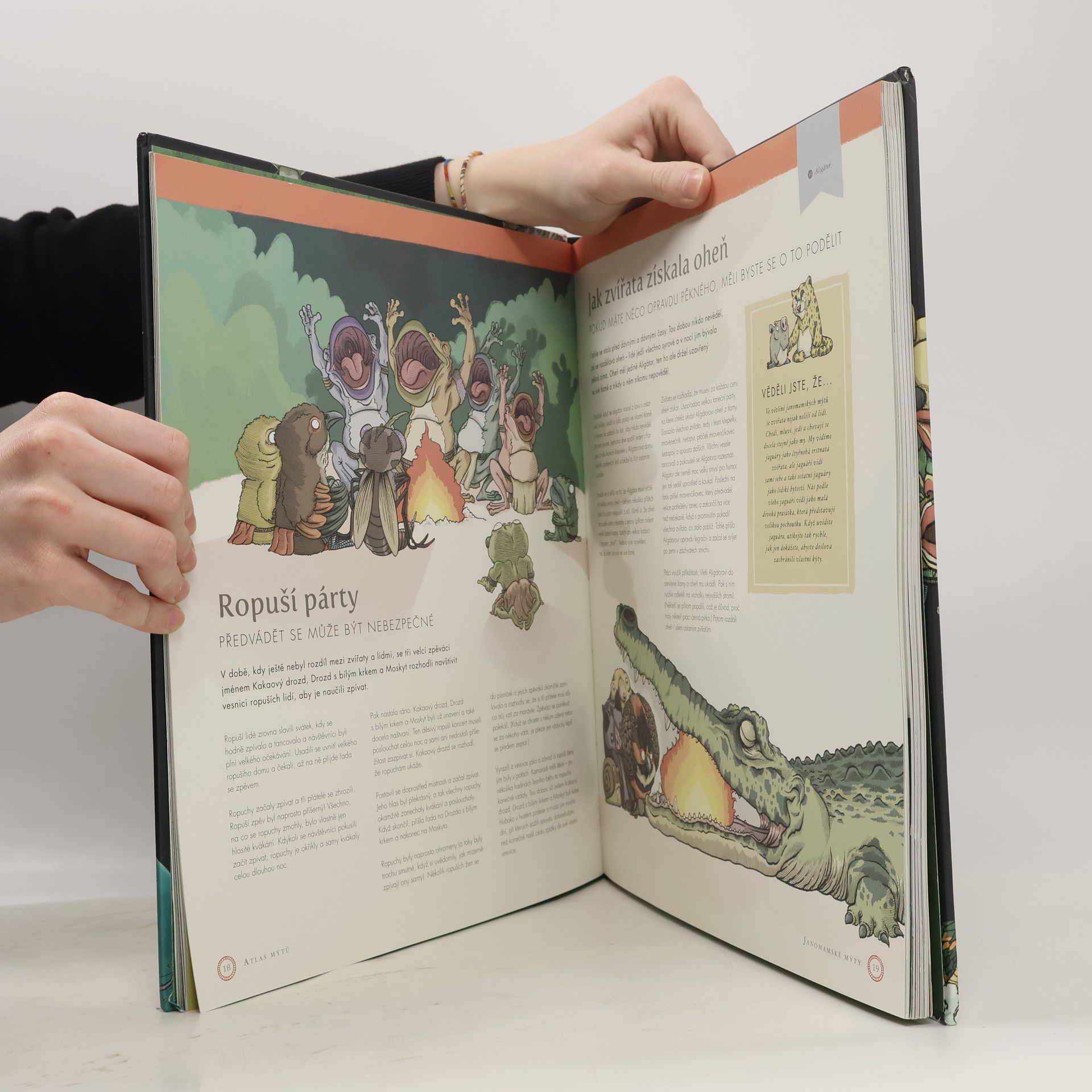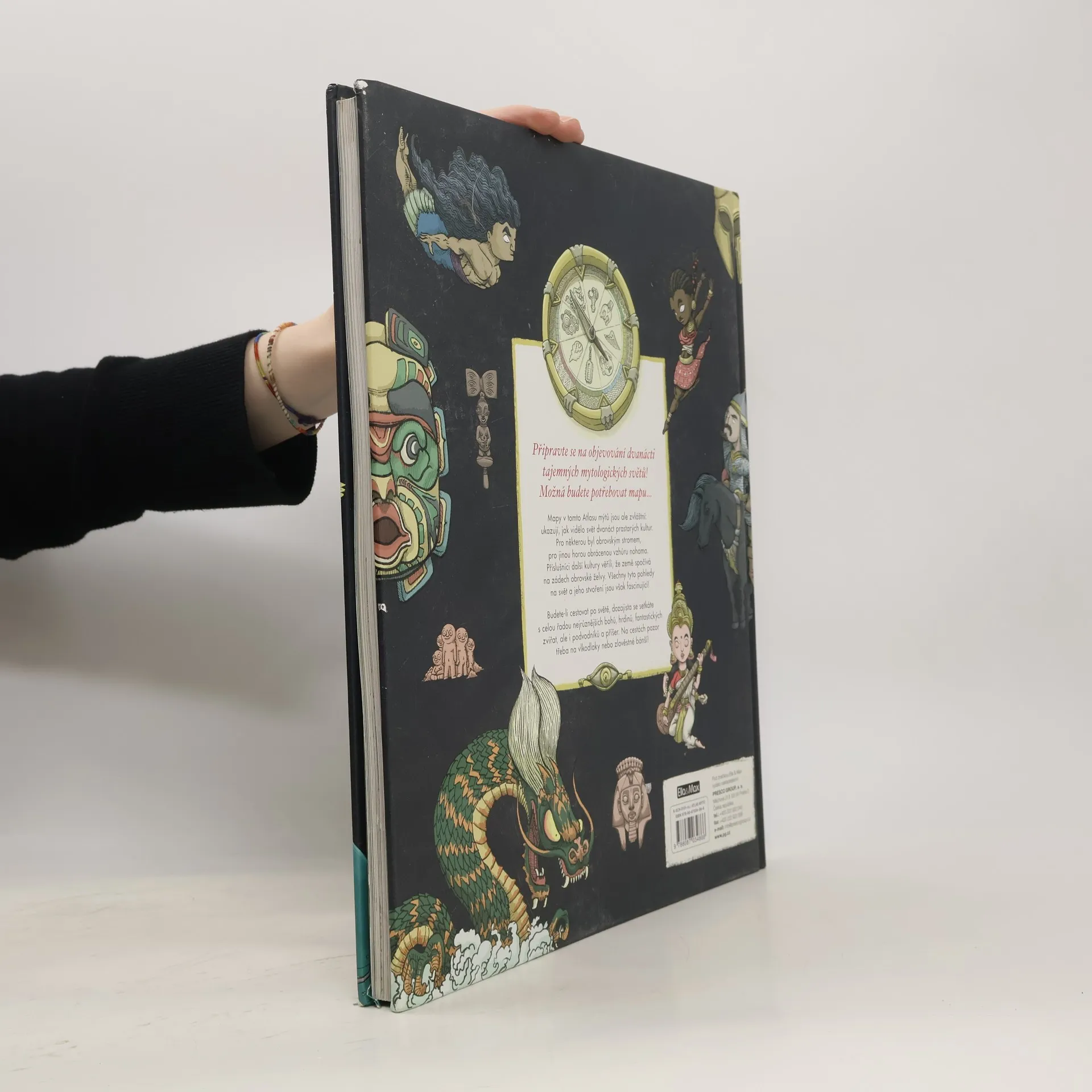 Vydejte se na cestu za poznáním světa s naším atlasem mýtů, který vás seznámí s úžasnými kulturami a jejich představami o stvoření světa. Každá z dvanácti map představuje jedinečný pohled na svět, od obrovského stromu po horu obrácenou vzhůru nohama, nebo víru, že země spočívá na zádech obrovské želvy. Při prohlížení map a čtení příběhů procestujete zeměkouli a objevujete legendy původních obyvatel Severní Ameriky, Aztéků či Janomamů. Dále se seznámíte s řeckými mýty, irskými, severskými a slovanskými bohy, a také s fascinujícími příběhy z Afriky, jako jsou jorubské a egyptské mýty. V Asii vás okouzlí hinduistické a japonské legendy, zatímco Oceánie nabídne pohled na polynéské kultury. Na své cestě potkáte bohy, fantastická zvířata, hrdiny i příšery, jako jsou vlkodlaci a děsivé mořské stvůry. Nezapomeňte si vzít mapu a najděte si svou vlastní cestu úžasnými místy. Seznamte se se stovkami pozoruhodných postav a poznejte jejich příběhy. Cestujte dlouho a daleko, bavte se a nechte se unést, ale nebojte se – vždy najdete cestu zpátky, ať už na zádech ptáka bouřliváka, nebo v bárce, která vozí sluneční kotouč.