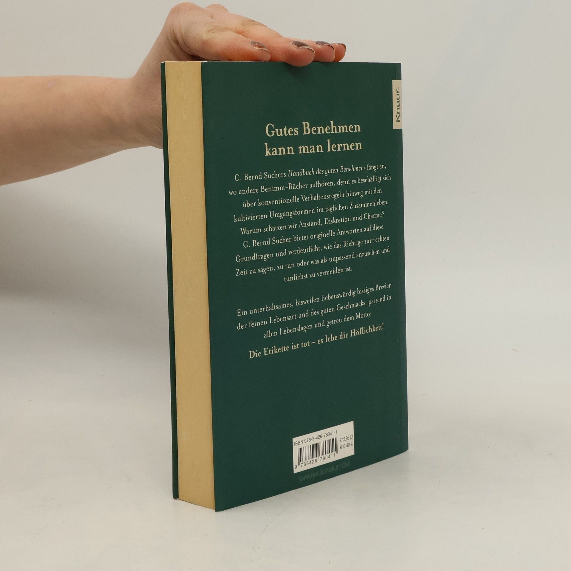 C. Bernd Suchers Handbuch des guten Benehmens fängt an, wo andere Benimmbücher aufhören, denn es beschäftigt sich über konventionelle Verhaltensregeln hinweg mit den kultivierten Umgangsformen im täglichen Zusammenleben. Warum schätzen wir Anstand, Diskretion und Charme? C. Bernd Sucher bietet originelle Antworten auf diese Grundfragen und verdeutlicht, wie das Richtige zur rechten Zeit zu sagen, zu tun oder was als unpassend anzusehen und tunlichst zu vermeiden ist. Ein unterhaltsames, bisweilen liebenswürdig bissiges Brevier der feinen Lebensart und des guten Geschmacks – hilfreich in allen Situationen.