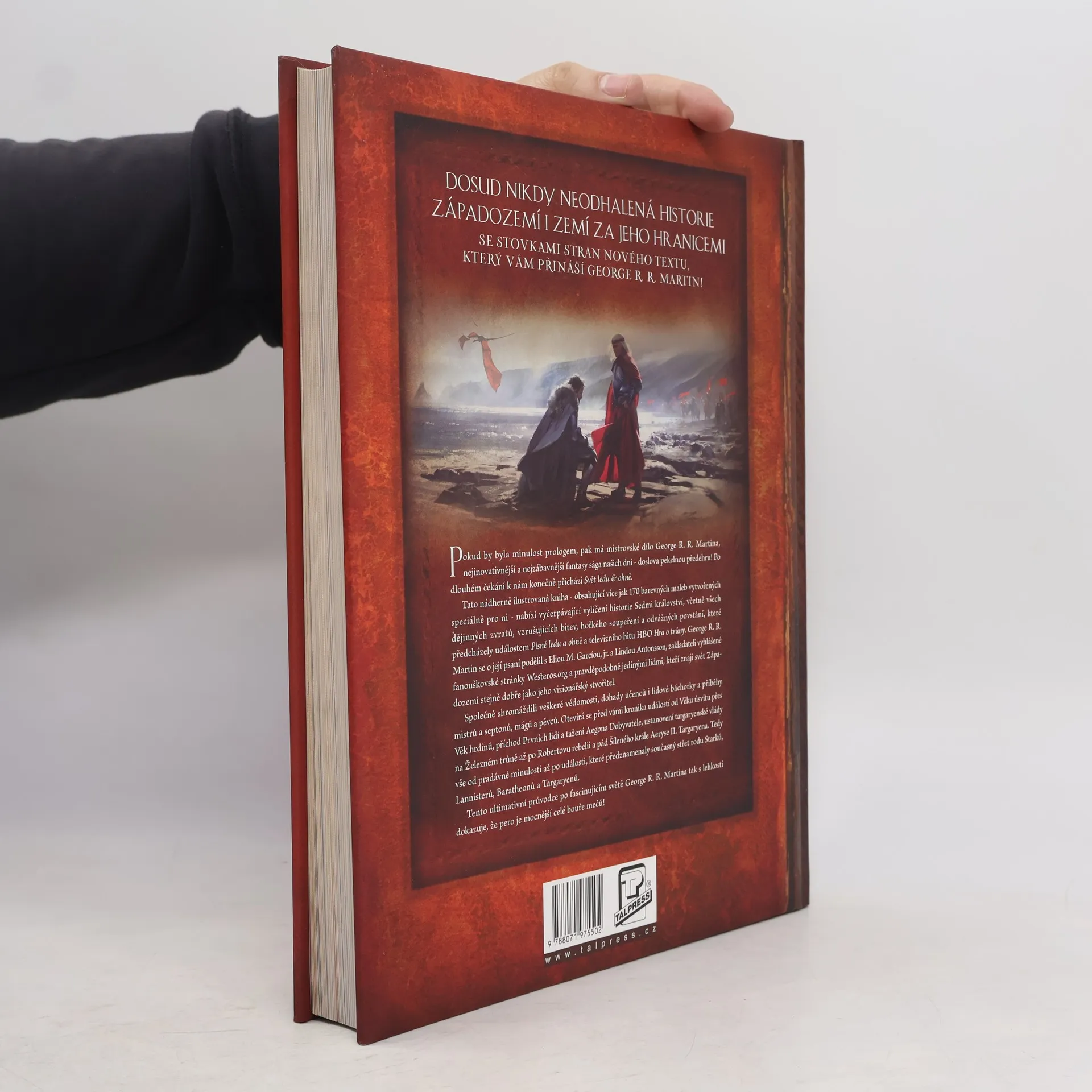 Tato nádherně ilustrovaná kniha – obsahující více než 170 barevných maleb vytvořených speciálně pro ni – nabízí vyčerpávající vylíčení historie Sedmi království, včetně všech dějinných zvratů, vzrušujících bitev, hořkého soupeření a odvážných povstání, které předcházely událostem Písně ledu a ohně a televizního hitu HBO Hra o trůny. George R. R. Martin se o její psaní podělil s Eliem M. Garcíou, jr., a Lindou Antonssonovou, zakladateli vyhlášené fanouškovské stránky Westeros.org a pravděpodobně jedinými lidmi, kteří znají svět Západozemí stejně dobře jako jeho vizionářský stvořitel.