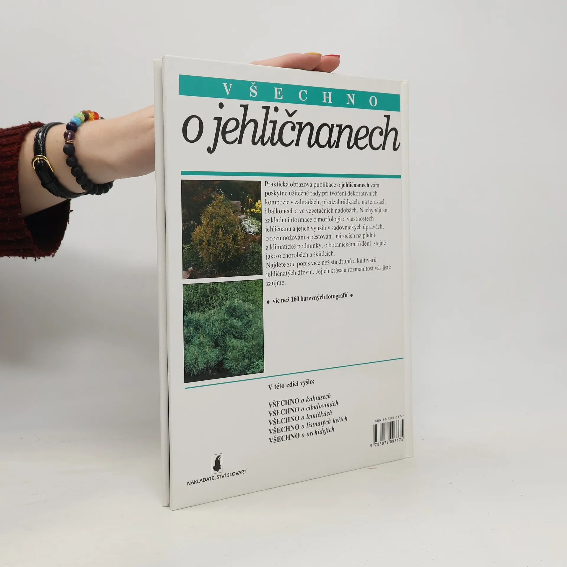 Praktická obrazová publikace o jehličnanech vám poskytne užitečné rady při tvoření dekorativních kompozic v zahradách, předzahrádkách, na terasách i balkonech a ve vegetačních nádobách. Nechybějí ani základní informace o morfologii a vlastnostech jehličnanů a jejich využití v sadovnických úpravách, o rozmnožování a pěstování, nárocích na půdní a klimatické podmínky, o botanickém třídění, stejně jako o chorobách a škůdcích. Najdete zde popis více než sta druhů a kultivarů jehličnatých dřevin. Jejich krása a rozmanitost vás jistě zaujme. Víc než 160 barevných fotografií.