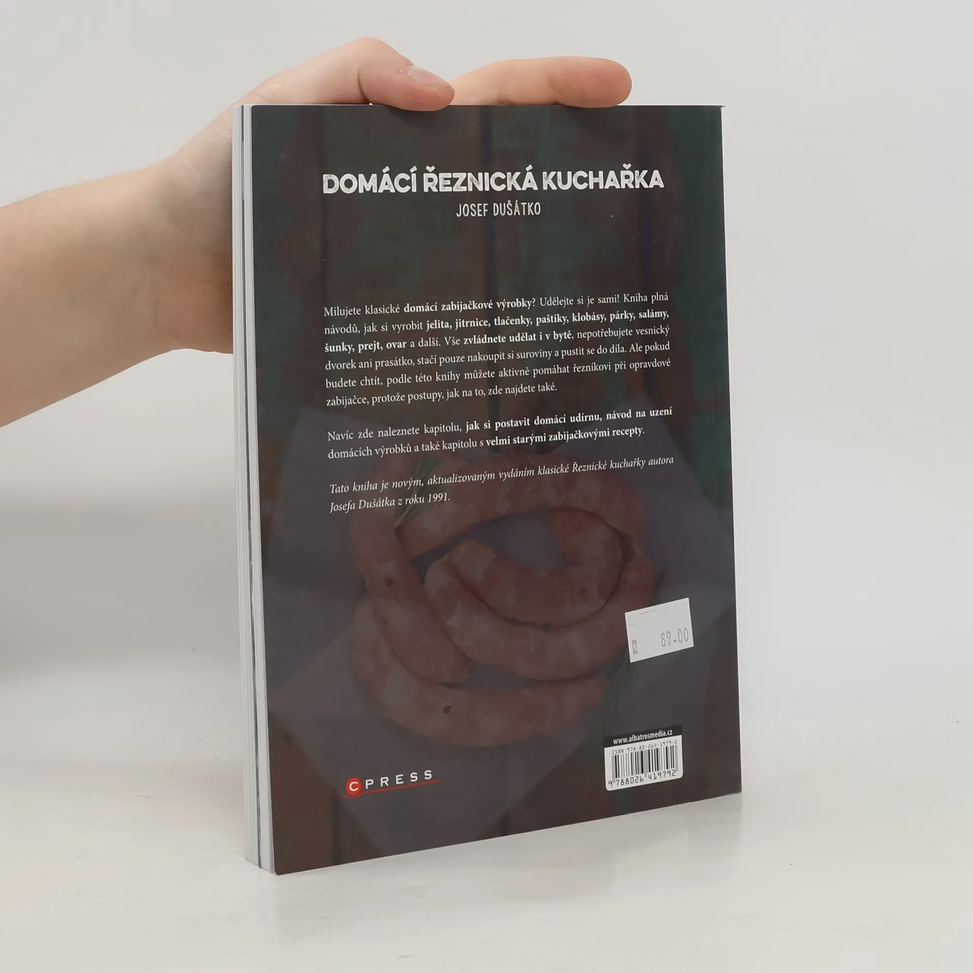 Milujete klasické domácí zabijačkové výrobky? Udělejte si je sami! Kniha plná návodů, jak si vyrobit jelita, jitrnice, tlačenky, paštiky, klobásy, párky, salámy, šunky, prejt, ovar a další. Vše zvládnete udělat v bytě. Nepotřebujete vesnický dvorek ani prasátko. Kniha navíc obsahuje i kapitolu, jak si postavit udírnu, návod na uzení domácích výrobků a také několik velmi starých zabijačkových receptů.