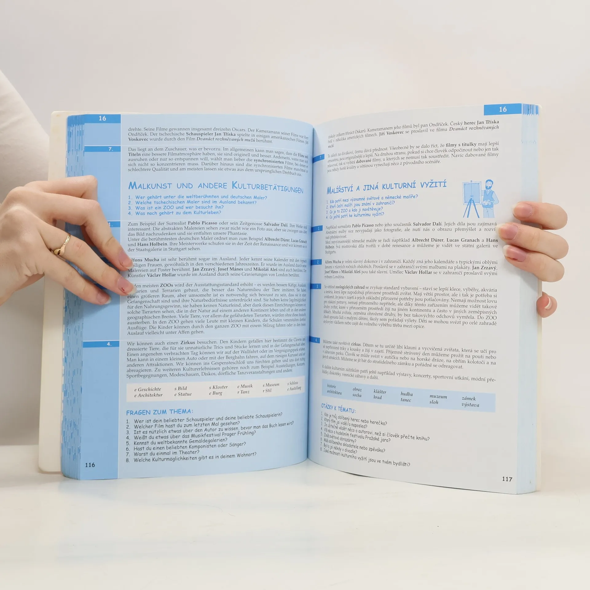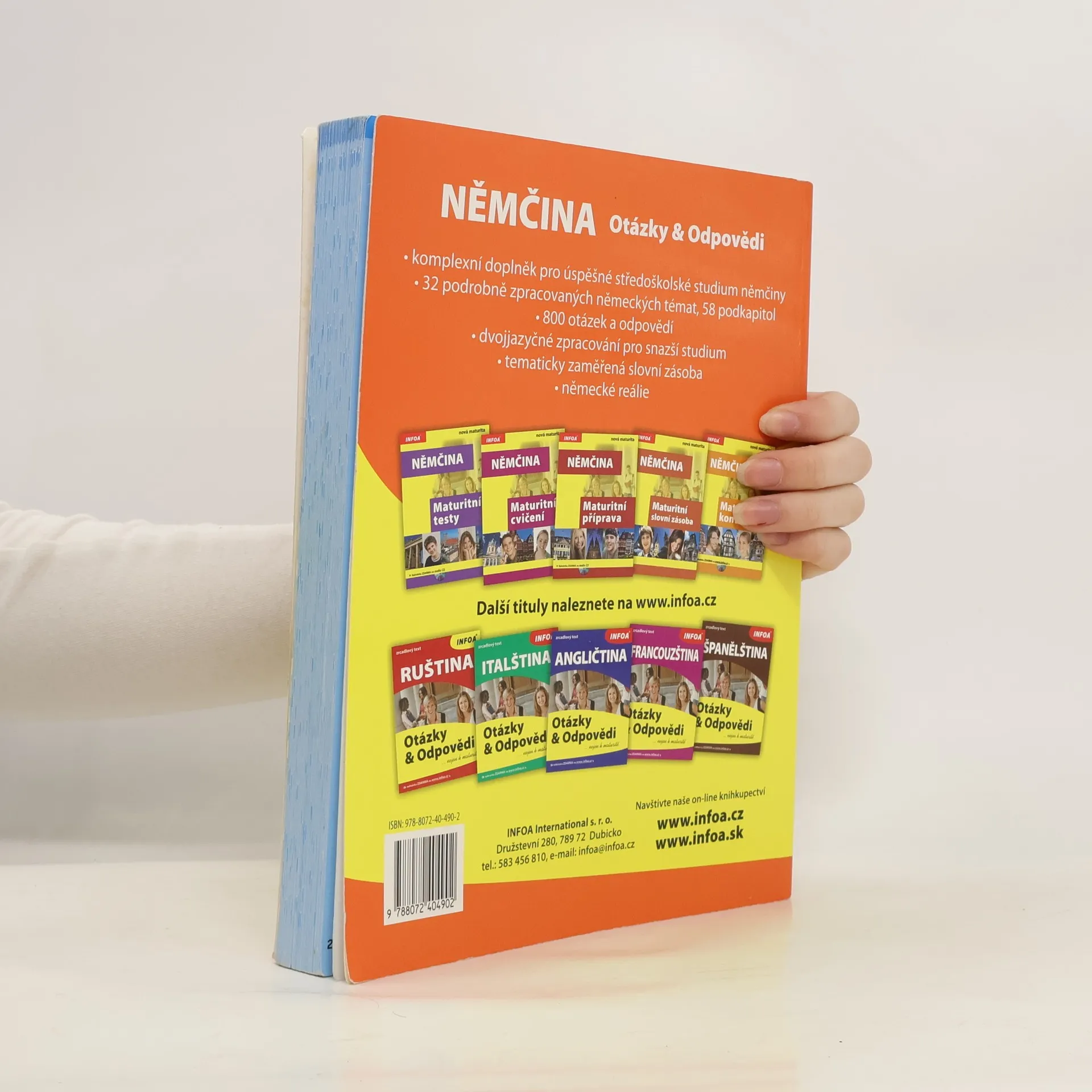 Podrobně zpracovaná témata k maturitě formou otázek a odpovědí (cca 800), zrcadlový text pro snazší studium, tematicky zaměřená slovní zásoba.