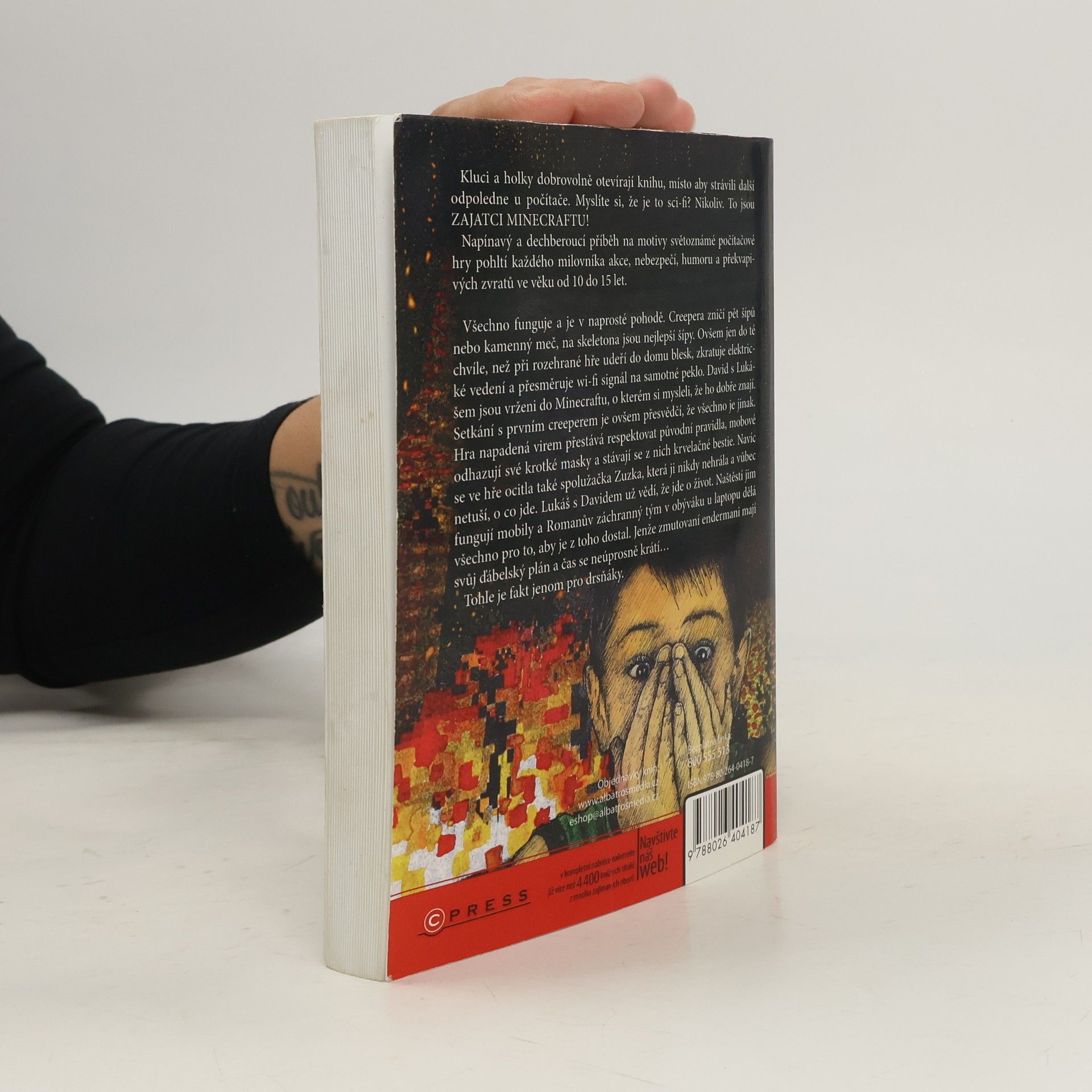 Kluci a holky dobrovolně otvírají knihu, místo aby strávili další odpoledne u počítače. Myslíte si, že je to sci-fi? Nikoliv. To jsou ZAJATCI MINECRAFTU! Napínavý a dech beroucí příběh na motivy světoznámé počítačové hry pohltí každého milovníka akce, nebezpečí, humoru a překvapivých zvratů ve věku od 10 do 15 let. Všechno funguje a je v naprosté pohodě. Creepera zničí pět šípů nebo kamenný meč, na skeletona jsou nejlepší šípy. Ovšem jen do té chvíle, než při rozehrané hře udeří do domu blesk, zkratuje elektrické vedení a přesměruje wi-fi signál na samotné peklo. David s Lukášem jsou vrženi do Minecraftu, o kterém si mysleli, že ho dobře znají. Setkání s prvním creeperem je ovšem přesvědčí, že všechno je jinak. Hra napadená virem přestává respektovat původní pravidla, mobové odhazují své krotké masky a stávají se z nich krvelačné bestie. První vydání. ISBN pro soubor 978-80-264-0870-3