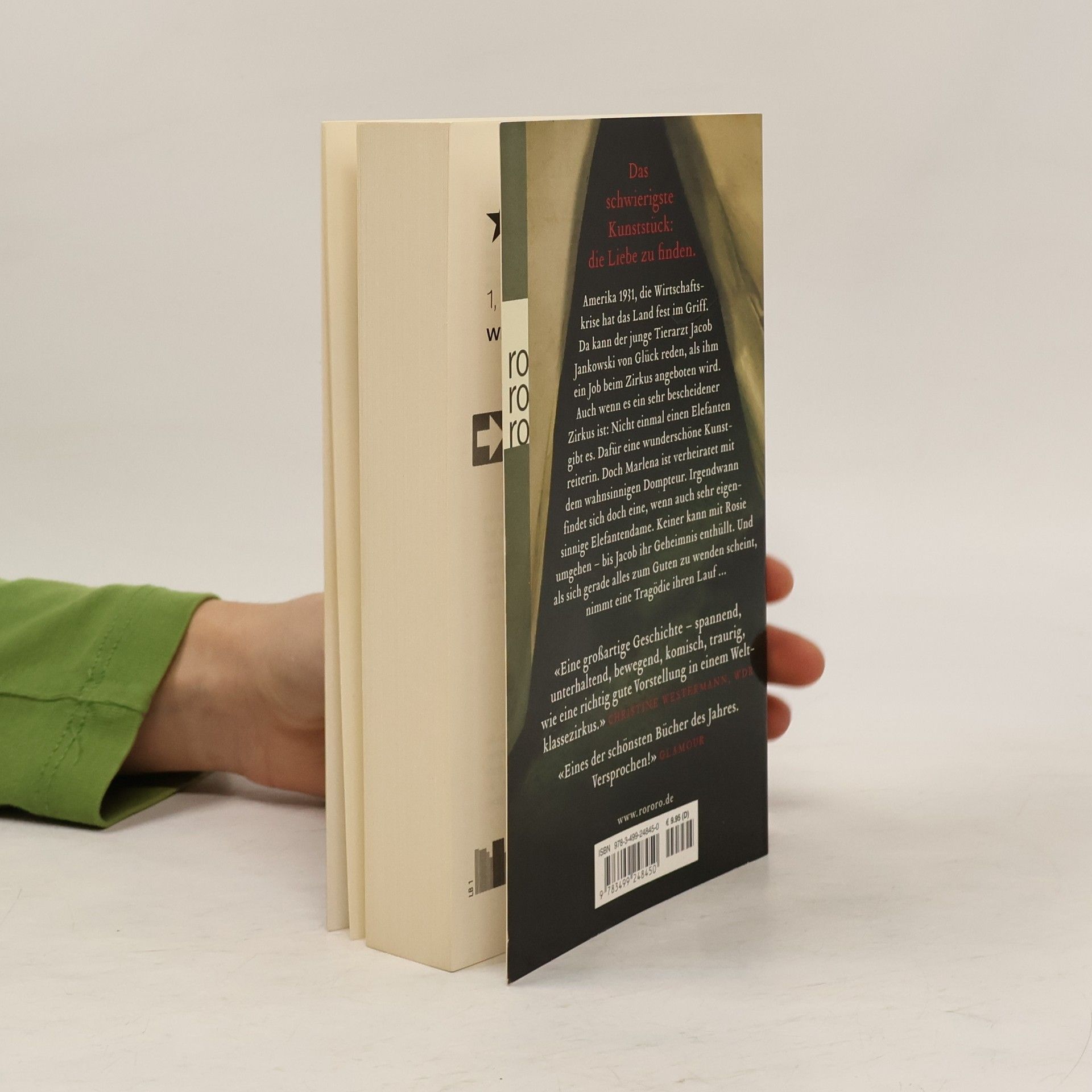 Das schwierigste Kunststück: die Liebe zu finden. Amerika 1931, die Wirtschaftskrise hat das Land fest im Griff. Da kann der junge Tierarzt Jacob Jankowski von Glück reden, als ihm ein Job beim Zirkus angeboten wird. Auch wenn es ein sehr bescheidener Zirkus ist: Nicht einmal einen Elefanten gibt es. Dafür eine wunderschöne Kunstreiterin. Doch Marlena ist verheiratet mit dem wahnsinnigen Dompteur. Irgendwann findet sich doch eine, wenn auch sehr eigensinnige Elefantendame. Keiner kann mit Rosie umgehen – bis Jacob ihr Geheimnis enthüllt. Und als sich gerade alles zum Guten zu wenden scheint, nimmt eine Tragödie ihren Lauf ... «Eine großartige Geschichte – spannend, unterhaltend, bewegend, komisch, traurig, wie eine richtig gute Vorstellung in einem Weltklassezirkus.» CHRISTINE WESTERMANN, WDR «Eines der schönsten Bücher des Jahres. Versprochen!» GLAMOUR