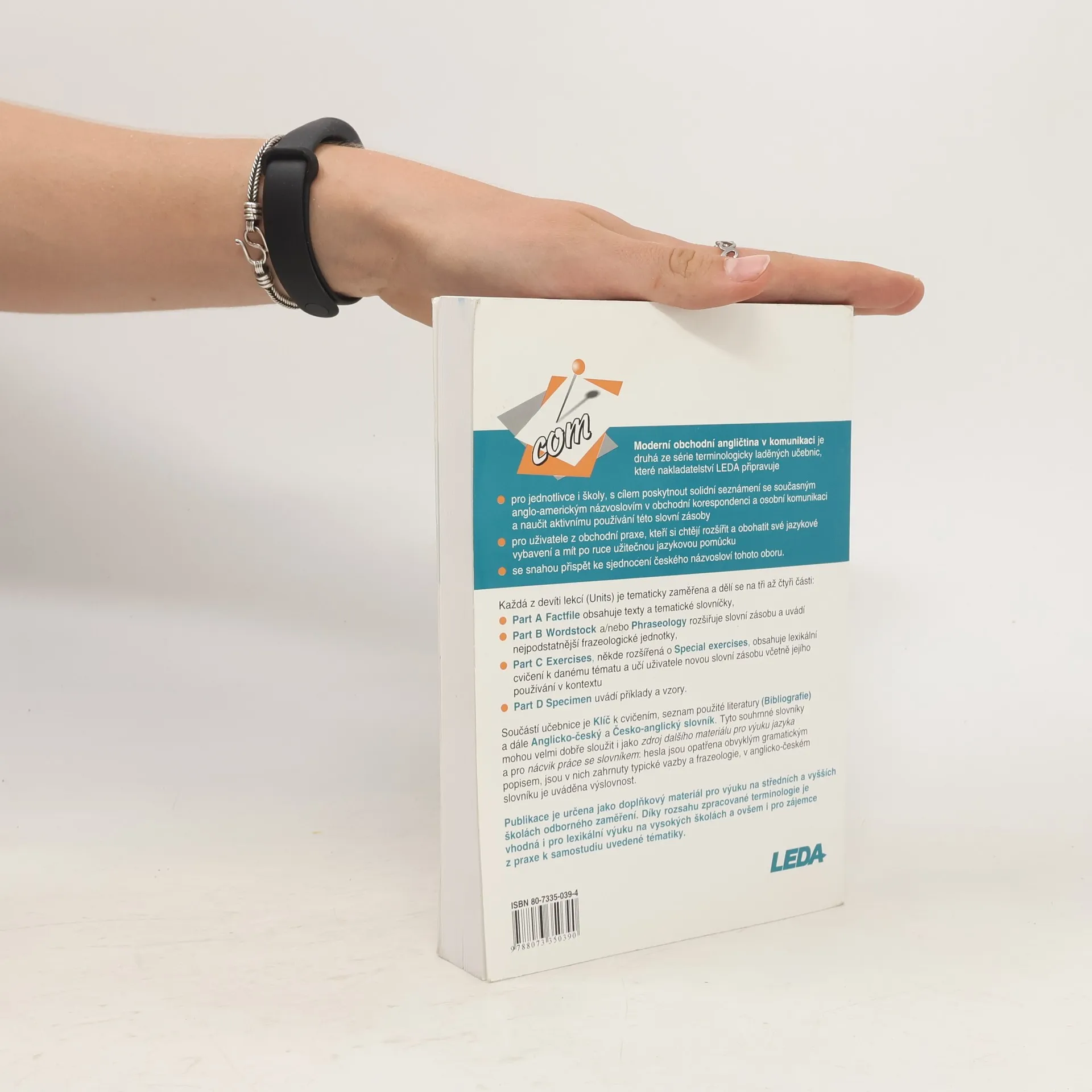 Publikace, která je určena jako doplňkový materiál pro výuku na středních a vyšších školách odborného zaměření, vhodná i pro lexikální výuku na vysokých školách. Učebnice má 9 tematicky zaměřených lekcí, každá obsahuje texty, tematické slovníčky, cvičení, příklady a vzory k danému tématu. Součástí učebnice je i klíč k cvičením a Anglicko-český a Česko-anglický slovník.
