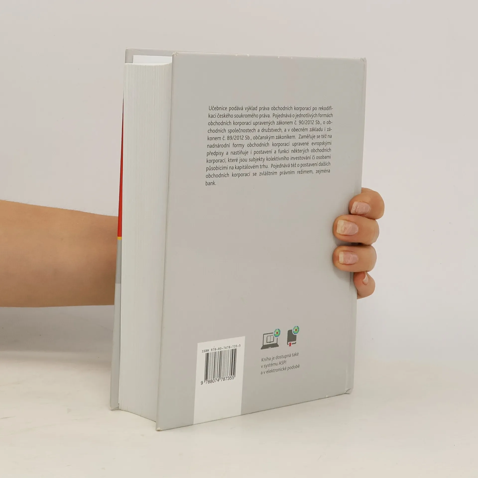Učebnice podává výklad práva obchodních korporací po rekodifikaci českého soukromého práva. Pojednává o jednotlivých formách obchodních korporací upravených zákonem č. 90/2012 Sb., o obchodních společnostech a družstvech, a v obecném základu i zákonem č. 89/2012 Sb., občanským zákoníkem. Zaměřuje se též na nadnárodní formy obchodních korporací upravené evropskými předpisy a nastiňuje i postavení a funkci některých obchodních korporací, které jsou subjekty kolektivního investování či osobami působícími na kapitálovém trhu. Pojednává též o postavení dalších obchodních korporací se zvláštním právním režimem, zejména bank.