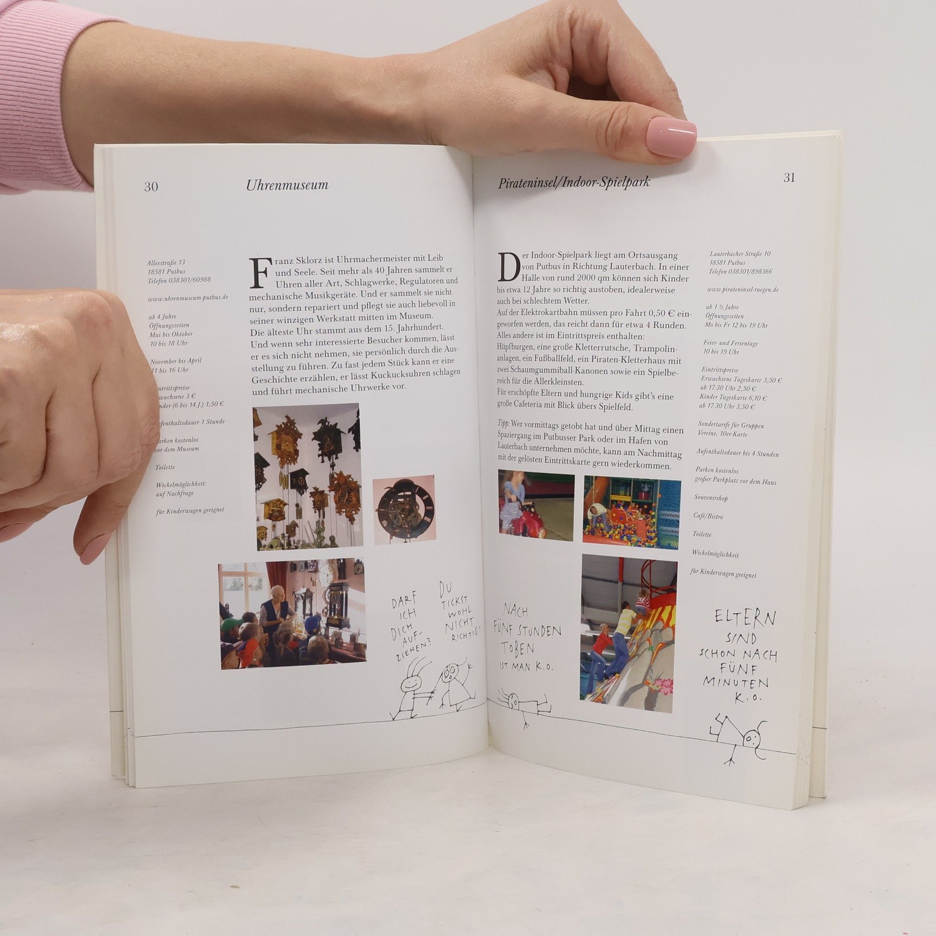 Auch wenn die Sonne gerade nicht zum Strand lockt, können Familien mit Kindern in den beliebten Urlaubsgebieten Vorpommerns jede Menge Spaß haben. Zahlreiche Freizeitangebote sind entstanden, für jede Jahreszeit und für jedes Wetter. Man muss sie nur entdecken. Was mit diesem Reiseführer zu einer leichten Aufgabe wird. Von der nördlichsten Rodelbahn Deutschlands bis zur Schmetterlingsfarm und zum Ozeaneum, von Freilichtbühnen bis zu spannenden Museen - die Autorinnen haben gesucht und getestet, was den Urlaub noch abwechslungsreicher macht. Ihre praktischen Handbücher liefern Mitteilenswertes zu je 80 Orten, die sich für Kinder eignen. Sie informieren über Eintrittspreise, Öffnungszeiten, Wickelmöglichkeiten, Eignung für Kinderwagen, gastronomische Einrichtungen, geben an, ab welcher Altersklasse sich ein Besuch lohnt und wie lange ein Aufenthalt dauern könnte. So wird Freizeitplanung zu einer angenehmen Aufgabe. Auf dass denn die Frage „Was machen wir morgen?“ einen vorfreudigen Charakter erhält! Mit Gutscheinen für verbilligte Eintritte im Wert von etwa Euro 15,-