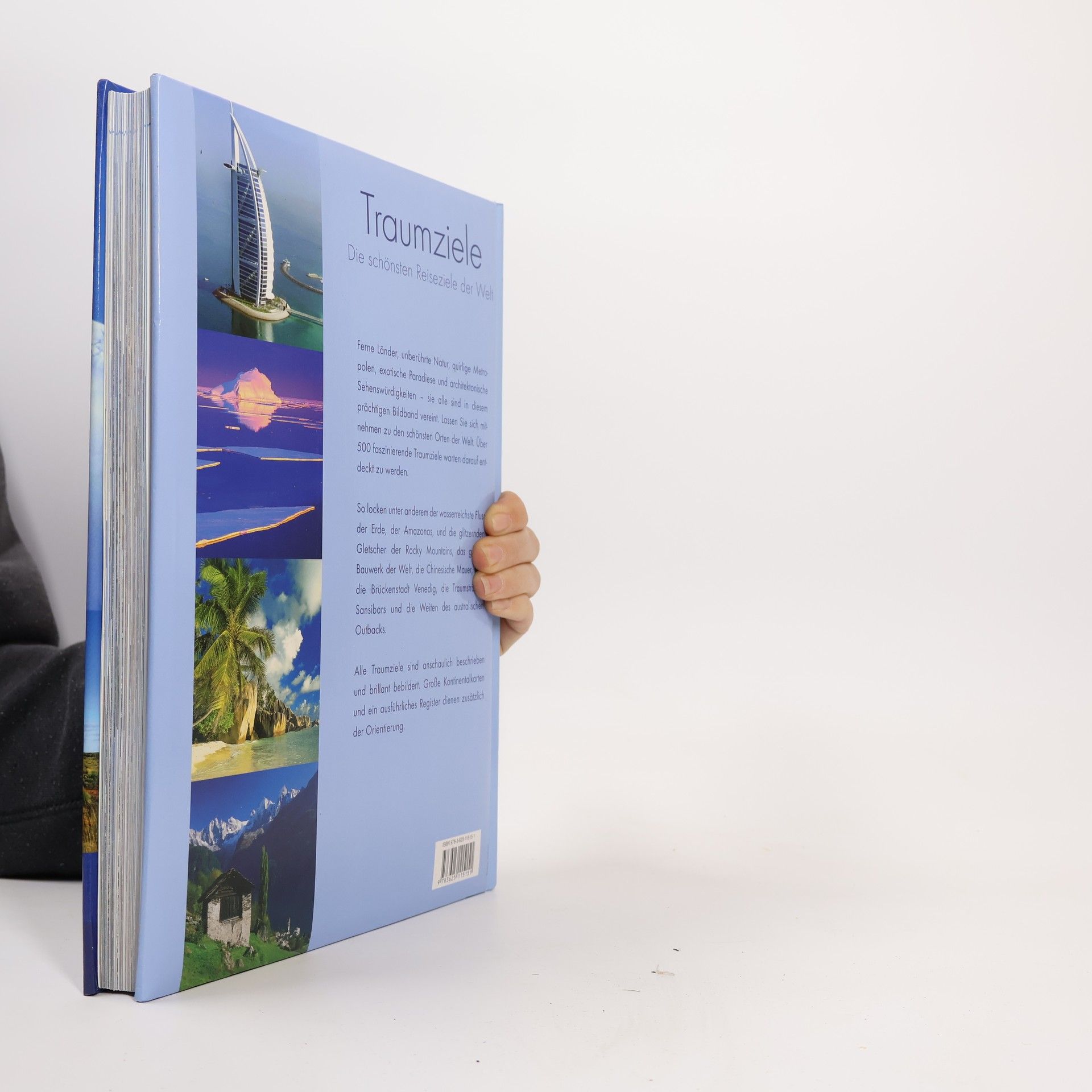 Ferne Länder, unberührte Natur, quirlige Metropolen, exotische Paradiese und architektonische Sehenswürdigkeiten. Sie alle sind in diesem prächtigen Bildband vereint. Lassen Sie sich mitnehmen zu den schönsten Orten der Welt. Über 500 faszinierende Traumziele warten darauf entdeckt zu werden. So locken unter anderem der wasserreichste Fluss der Erde, der Amazonas, und die glitzernden Gletscher der Rocky Mountains, das größte Bauwerk der Welt, die Chinesische Mauer, und die Brückenstadt Venedig, die Traumstrände Sansibars und die Weiten des australischen Outbacks. Alle Traumziele sind anschaulich beschrieben und brillant bebildert. Große Kontinentalkarten und ein ausführliches Register dienen zusätzlich der Orientierung.