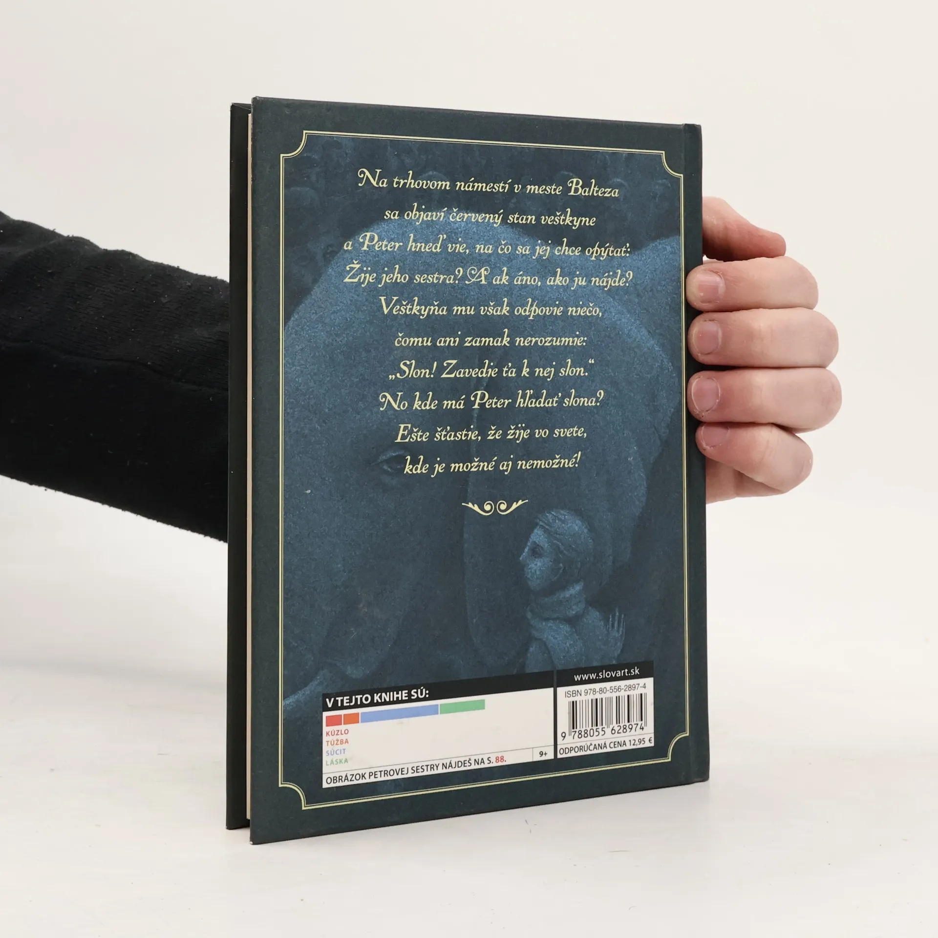 Na trhovom námestí v meste Balteza sa objaví červený stan veštkyne a Peter hneď vie, na čo sa jej chce opýtať: Žije jeho sestra? A ak áno, ako ju nájde? Veštkyňa mu však odpovie niečo, čomu ani zamak nerozumie: "Slon! Zavedie ťa k nej slon." No kde má Peter hľadať slona? Ešte šťastie, že žije vo svete, kde je možné aj nemožné!