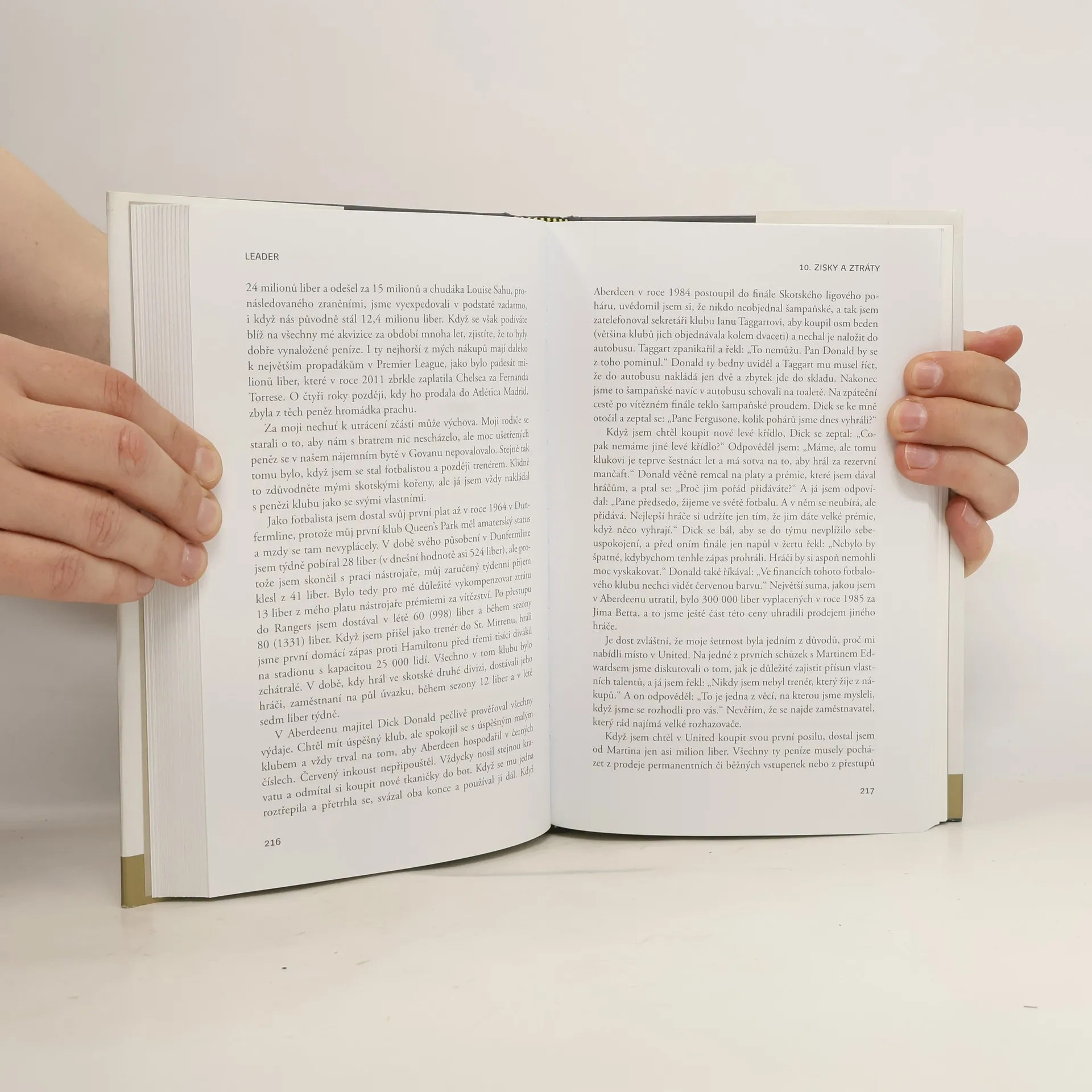 Nahlédněte do světa fotbalu a do zákulisí sportovních klubů očima jedné z nejvýznamnějších fotbalových osobností. Sir Alexander Ferguson, největší fotbalová manažerská hvězda všech dob, přichází s knihou, ve které mluví o své kariéře, zkušenostech, důležitých momentech a rozhodnutích a samozřejmě také o lidech, které na své neobyčejné cestě potkal. Leader není teoretickou příručkou pro fotbalové hráče a manažery sportovních klubů, nýbrž upřímnou výpovědí cílevědomého a silného muže. Ferguson není vystudovaný manažer, školu opustil ve 14 letech, živil se „rukama“ a po práci tvrdě trénoval. Je to muž, který se vždy díval otevřenýma očima a naslouchal. Je nesmírně disciplinovaný a to stejné vyžaduje po svých hráčích a spolupracovnících. Kniha vychází z rozhovorů s jeho přítelem Michaelem Moritzem a dotýká se nejrůznějších témat.