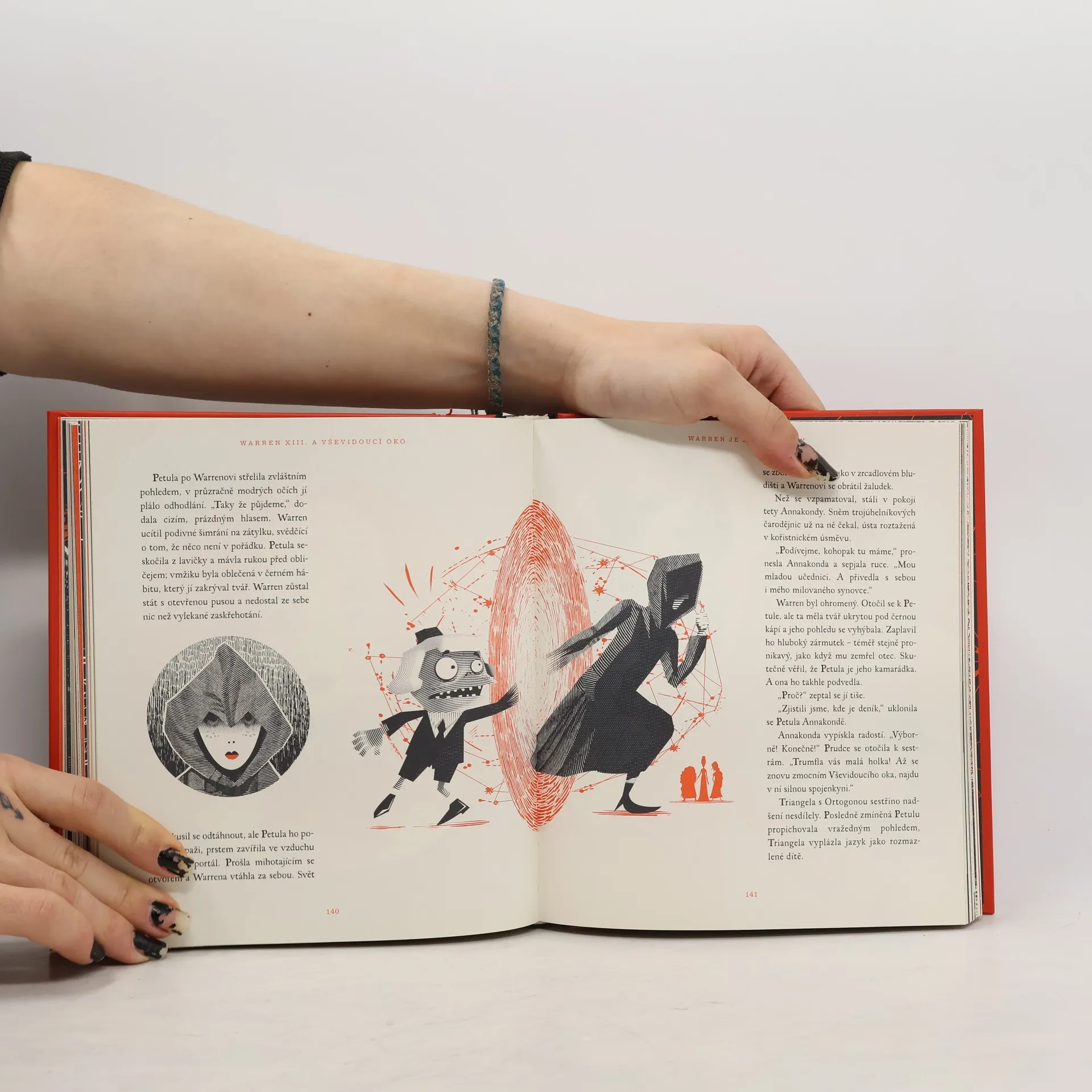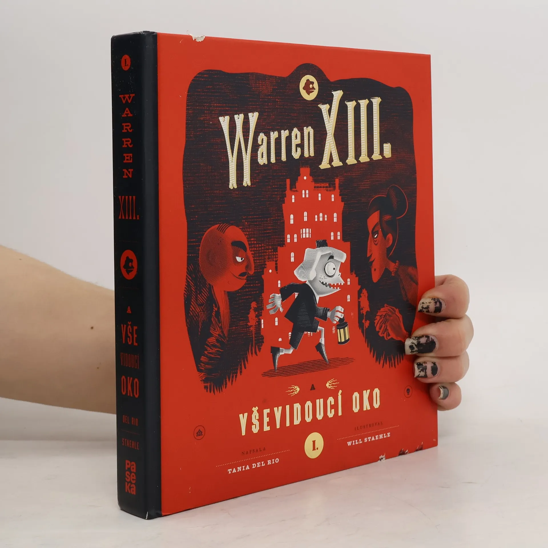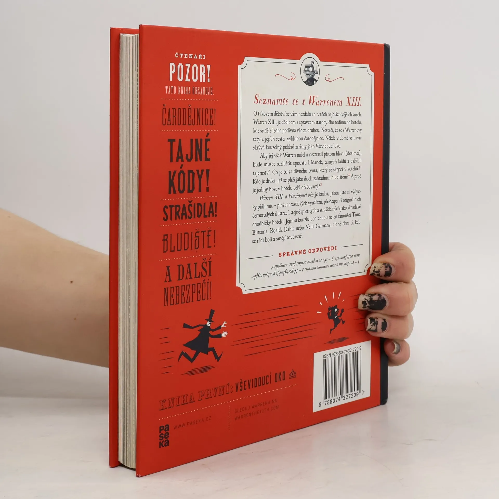 O takovém dětství se vám nezdálo ani v těch nejbláznivějších snech. Warren XIII. je dědicem a správcem starobylého rodinného hotelu, kde se děje jedna podivnější věc za druhou. V kotelně žije tvor se spoustou chapadel, zahradním bludištěm se plíží přízračná dívka, ze sester Warrenovy tety se vyklubou čarodějnice a mezi záhadnými hosty narazíte třeba na muže, který je od hlavy až k patě celý ofačovaný. Někde v domě se navíc skrývá kouzelný poklad známý jako Vševidoucí oko. Aby jej však Warren našel a neztratil přitom hlavu (doslova), bude muset rozluštit spoustu hádanek, tajných kódů a dalších tajemství. Warren XIII. a Vševidoucí oko je kniha, jakou jste si vždycky přáli mít – plná fantastických vynálezů, překvapení i originálních černo-rudých ilustrací, stejně spletitých a strašidelných jako křivolaké chodbičky hotelu. Jejímu kouzlu podlehnou nejen fanoušci Tima Burtona, Roalda Dahla nebo Neila Gaimana, ale všichni ti, kdo se rádi bojí a smějí současně.