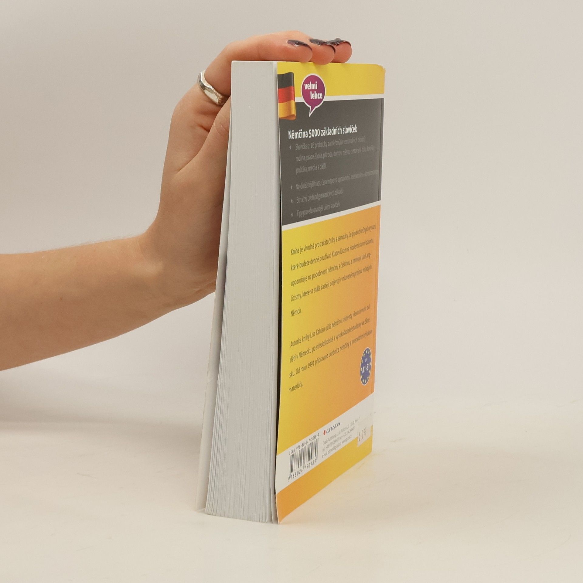 Kniha je vhodná pro začátečníky a samouky. Je plná užitečných výrazů, které budete denně používat. Klade důraz na moderní slovní zásobu, upozorňuje na podobnosti němčiny s češtinou a zmiňuje také anglicismy, které se stále častěji objevují v mluveném projevu mladých Němců. Autorka knihy Lisa Kahlen učila němčinu studenty všech úrovní: od dětí v Německu po středoškolské a vysokoškolské studenty ve Skotsku. Od roku 1991 připravuje učebnice němčiny a interaktivní výukové materiály.