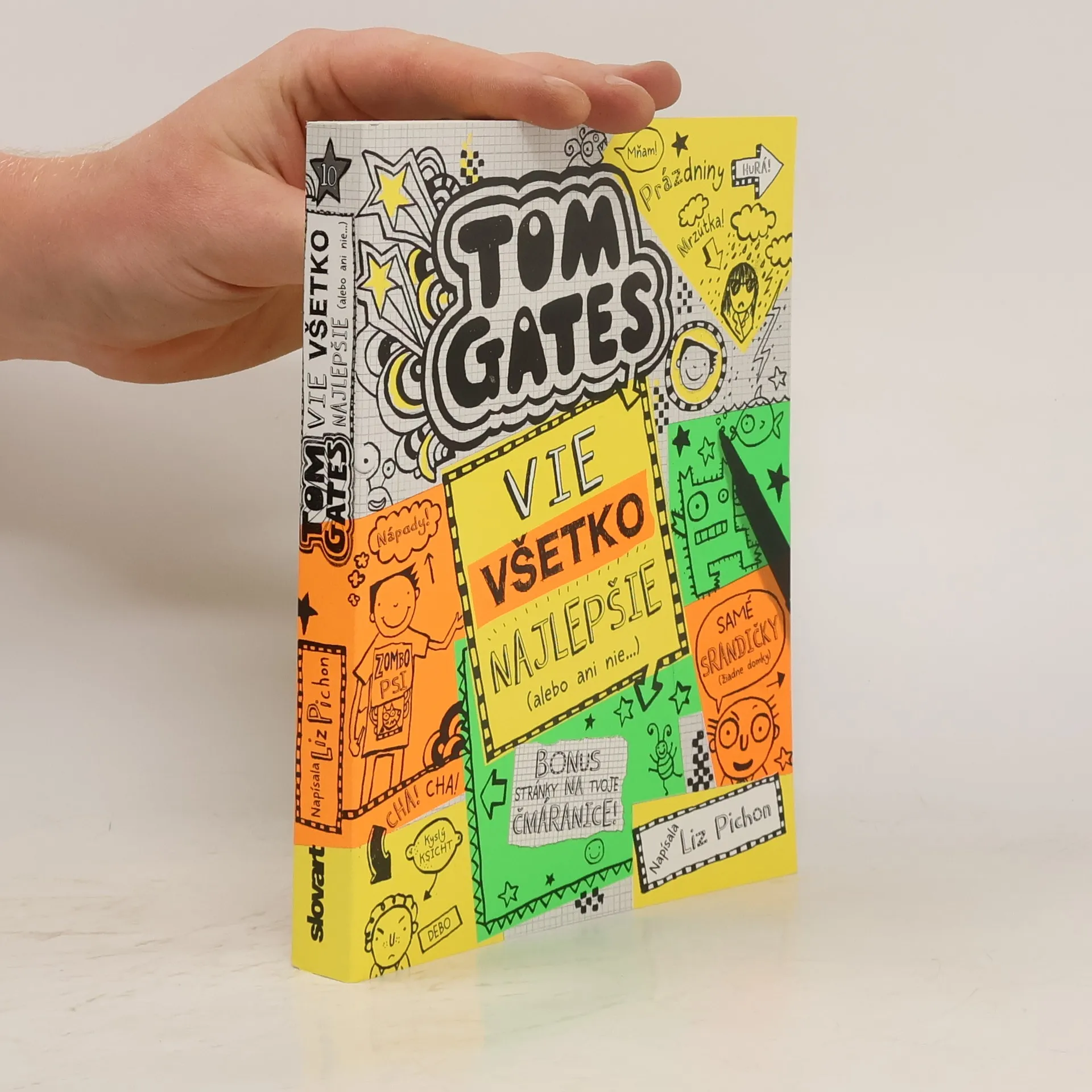 Preži s Tomom Gatesom ďalšie ešte strelenejšie dobrodružstvá, srandičky, výčiny a nové vtipy už v desiatom pokračovaní jeho príbehov! Kniha je plná EXTRA zábaviek a kvízov pre teba, nech sa náhodou ani chvíľku nenudíš, ak ti prázdniny nedopadnú podľa plánu – ako je to v Tomovom prípade. Ešteže náš milý Tom vie všetko najlepšie na svete a aj z obyčajného lepiaceho bločka dokáže vymyslieť lotrovinu, ktorá pobaví ešte aj Deliinu kamošku. Alebo žeby nie...