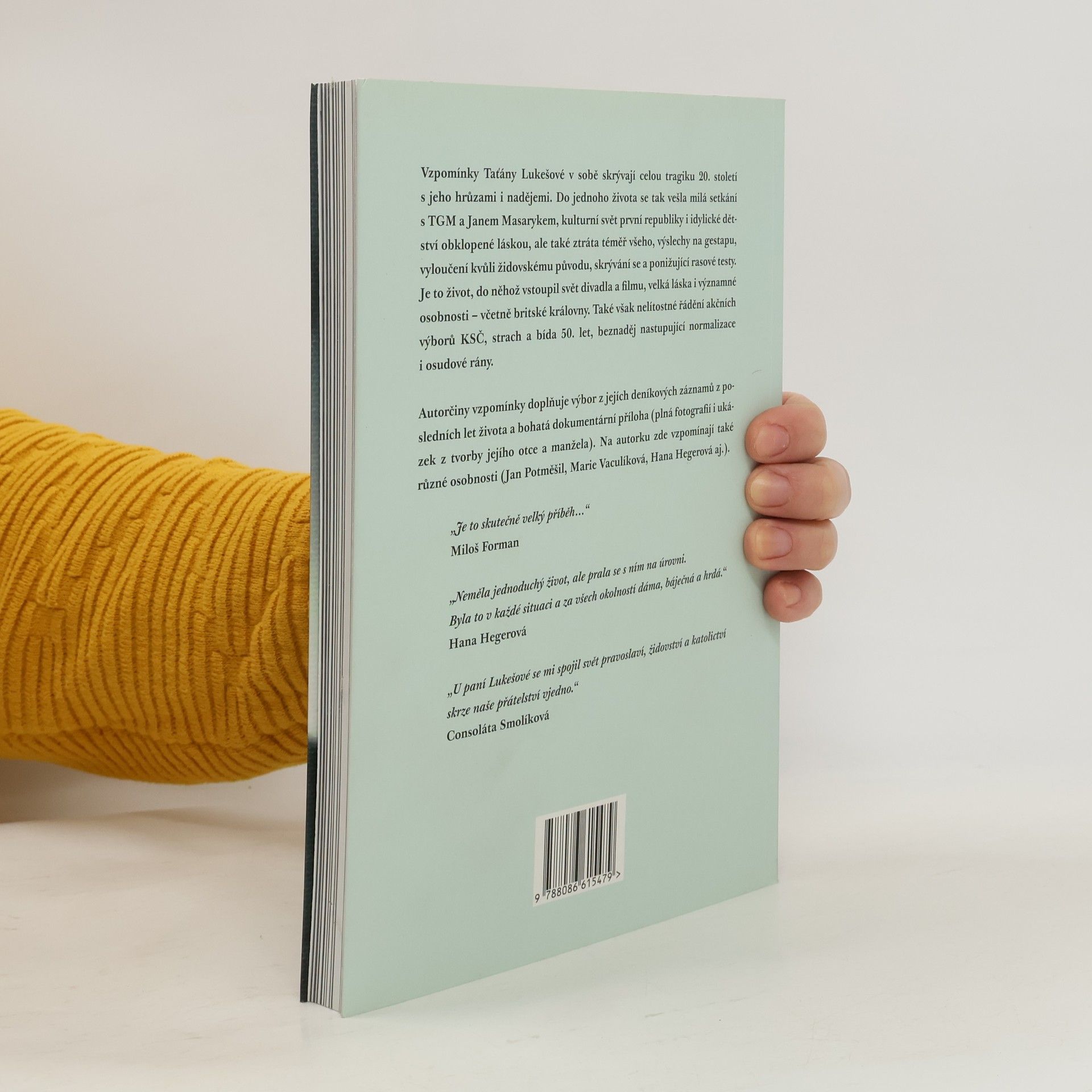 Vzpomínky Taťány Lukešové v sobě skrývají celou tragiku 20. století s jeho hrůzami i nadějemi. Do jednoho života se tak vešla milá setkání s TGM a Janem Masarykem, kulturní svět první republiky i idylické dětství obklopené láskou, ale také ztráta téměř všeho, výslechy na gestapu, vyloučení kvůli židovskému původu, skrývání se a ponižující rasové testy. Je to život, do něhož vstoupil svět divadla a filmu, velká láska i významné osobnosti včetně britské královny. Ale také nelítostné řádění akčních výborů KSČ, strach a bída 50. let, beznaděj nastupující normalizace i osudové rány. Autorčiny vzpomínky doplňuje výbor z jejích deníkových záznamů z posledních let života a bohatá dokumentární příloha (plná fotografií i ukázek z tvorby jejího otce a manžela). Na autorku zde vzpomínají také různé osobnosti (Jan Potměšil, Marie Vaculíková, Hana Hegerová aj.).