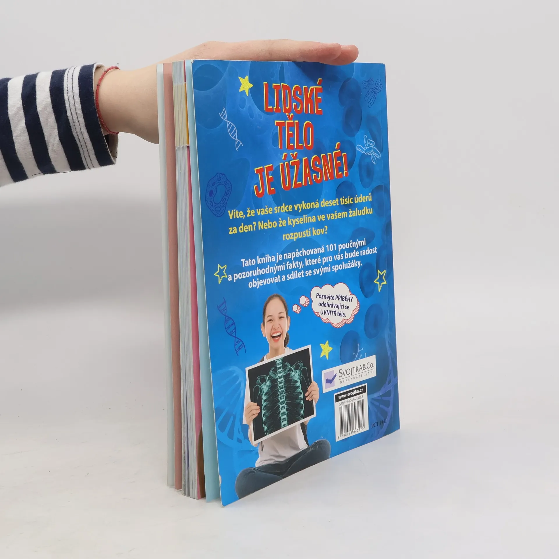 Sto zajímavostí o lidském těle a ještě jedna navíc! Zapomeňte na nudné učebnice biologie, tady na vás čekají nevšední a pozoruhodná fakta, o nichž jste zřejmě ani neměli tušení. Věděli jste, že kosti jsou z jedné pětiny tvořeny vodou? Že se písničky ukládají do jiné části mozku než ostatní vzpomínky? Že naše prsty nemají svaly? Že se během dne zmenšujeme? Nebo že můžeme mít alergickou reakci na vlastní telefon? Tato kniha je napěchována množstvím zábavných vědomostí a faktů a dozajista rozšíří vaše obzory. Přesvědčte se, co všechno vaše tělo během dne zvládne, a ohromte svými vědomostmi kamarády a spolužáky ve škole.