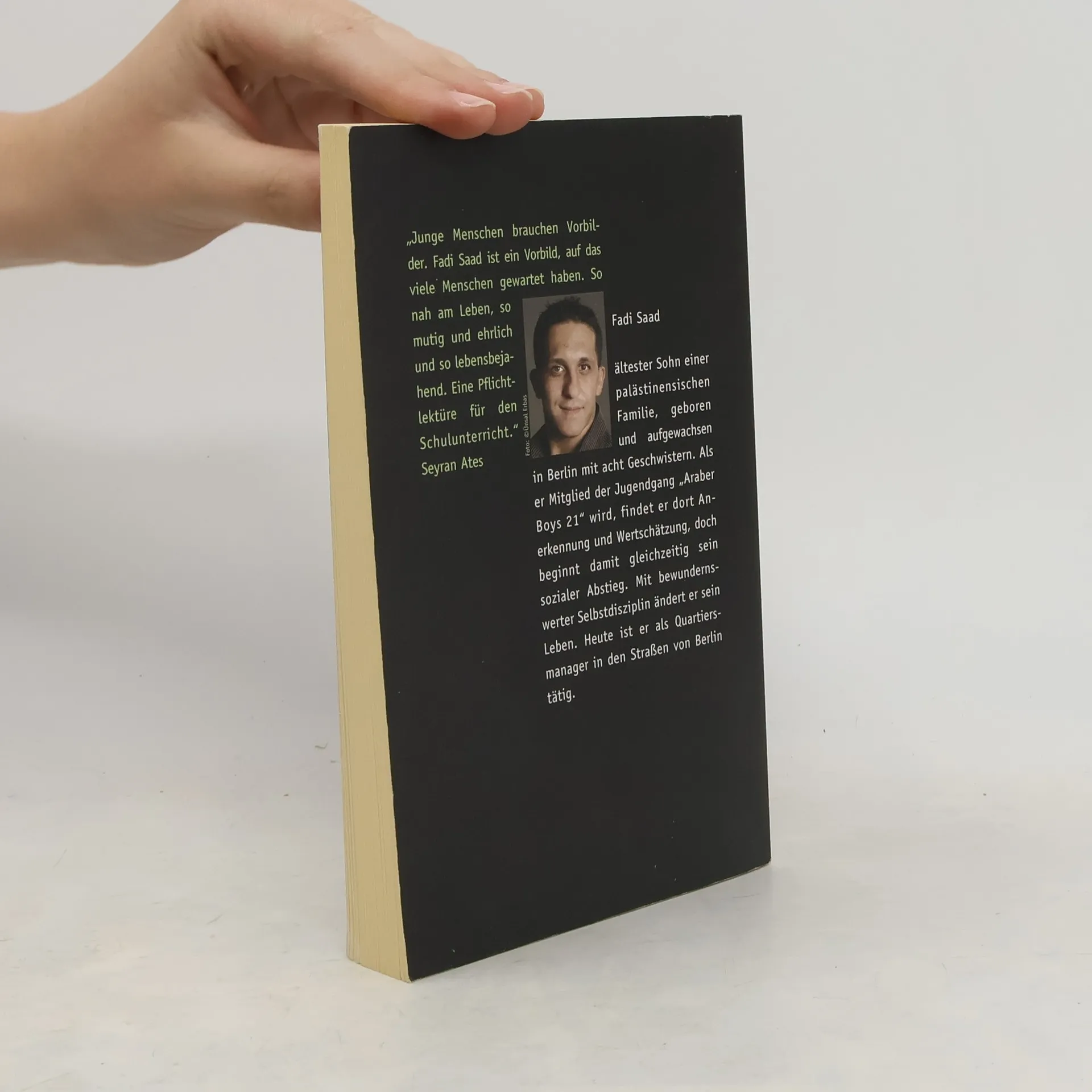Mit seiner Gang „Araber Boys 21“ zog er durch Berlin, klaute, verprügelte, bezog Dresche - und ging in den Jugendknast. Heute bewahrt er als Kiez-Manager im Auftrag des Berliner Senats Jugendliche vor dem Absturz und begleitet Angela Merkel zum Staatsempfang in den Elysée-Palast, um dort über Chancengleichheit und Integration zu referieren. Das eindrückliche Selbstzeugnis des Fadi Saad zeigt, wie schwierig und aussichtslos das Leben eines jungen Deutschen palästinensischer Herkunft sein kann. Vor allem aber zeigt es, wie es einem gelungen ist, mit eisernem Willen dem Teufelskreis aus Hoffnungslosigkeit, Gewalt und sozialem Abstieg zu entkommen.