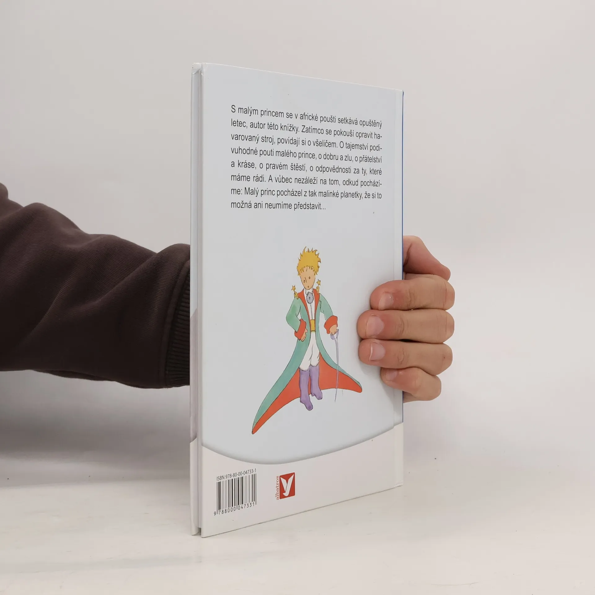 S Malým princem se v africké poušti setkává opuštěný letec, autor této knížky. Zatímco se pokouší opravit havarovaný stroj, povídají si o všeličem. O tajemství podivuhodné pouti Malého prince, o dobru a zlu, o přátelství a kráse, o pravém štěstí, o odpovědnosti za ty, které máme rádi. A vůbec nezáleží na tom, odkud pocházíme: Malý princ pocházel z tak malinké planetky, že si to možná ani neumíme představit...