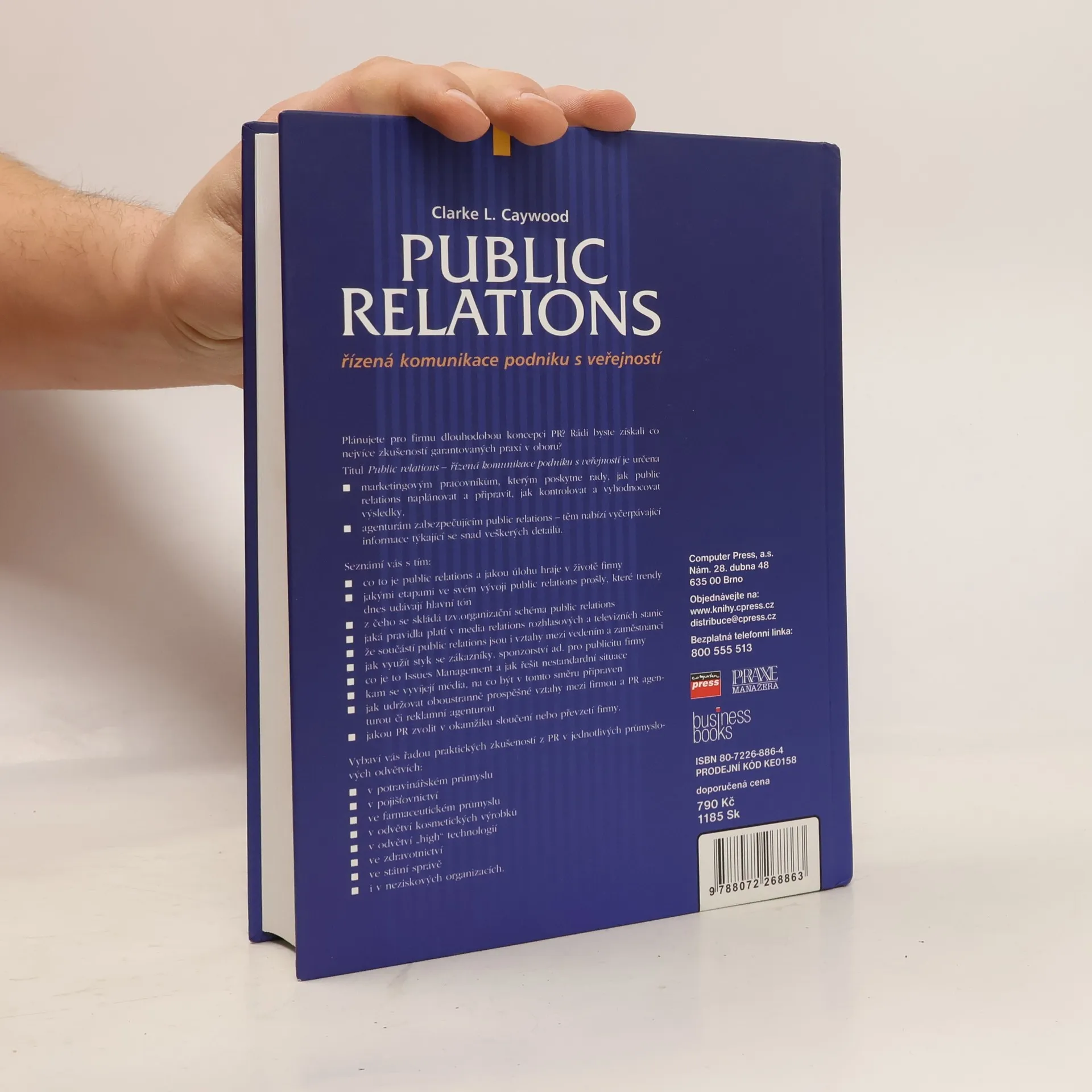 Plánujete pro firmu dlouhodobou koncepci PR? Rádi byste získali co nejvíce zkušeností garantovaných praxí v oboru? Titul Public relations – řízená komunikace podniku s veřejností je určena: - marketingovým pracovníkům, kterým poskytne rady, jak public relations naplánovat a připravit, jak kontrolovat a vyhodnocovat výsledky, - agenturám zaměřeným na servis public relations – těm nabízí vyčerpávající informace týkající se snad veškerých detailů.