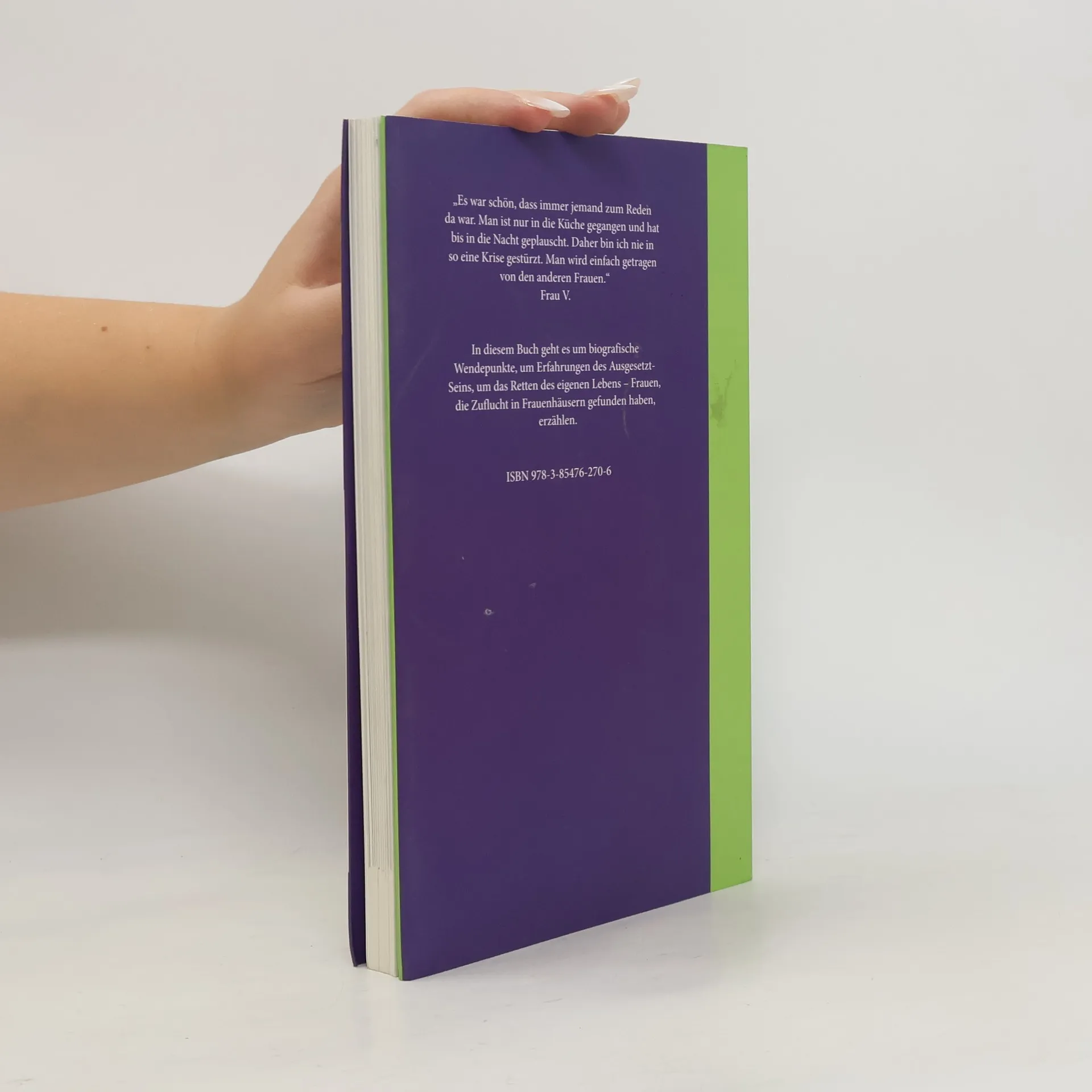 Frauen erzählen von Liebe und Gewalt, Träumen und Hoffnungen. Lebensentwürfe und Enttäuschungen sind die Themen der Erzählungen von Frauen in diesem Buch. Eine zentrale Erfahrung ist ihnen gemeinsam: Sie alle haben männliche Gewalt in Beziehungen erlebt und Zuflucht in einem Frauenhaus gesucht. Sie kommen aus vielen Ländern der Welt, sind älter oder jünger, haben Kinder oder keine, möchten ihren Mann verlassen oder wieder zu ihm zurückkehren. Manche von ihnen haben physische Gewalt erfahren, andere aufgrund psychischen Terrors ihr Zuhause verlassen. Das Frauenhaus ist für sie alle ein Ort der Sicherheit und des Zur-Ruhe-Kommens, des Nachdenkens und Kraft-Schöpfens, für viele auch der Beginn eines neuen Lebensabschnittes. Die Erzählungen der Frauen in diesem Band sind persönlich, authentisch und intensiv, ihr jeweils individueller Tonfall blieb erhalten. Gleichzeitig verweisen aber ihre Geschichten über das Individuelle hinaus, auf strukturelle und gesellschaftliche Zusammenhänge - die Basis für männliche Macht und Unterdrückung von Frauen. Erweitert werden ihre Erzählungen durch Bilder der Wiener Fotografin Ruth Ehrmann.
