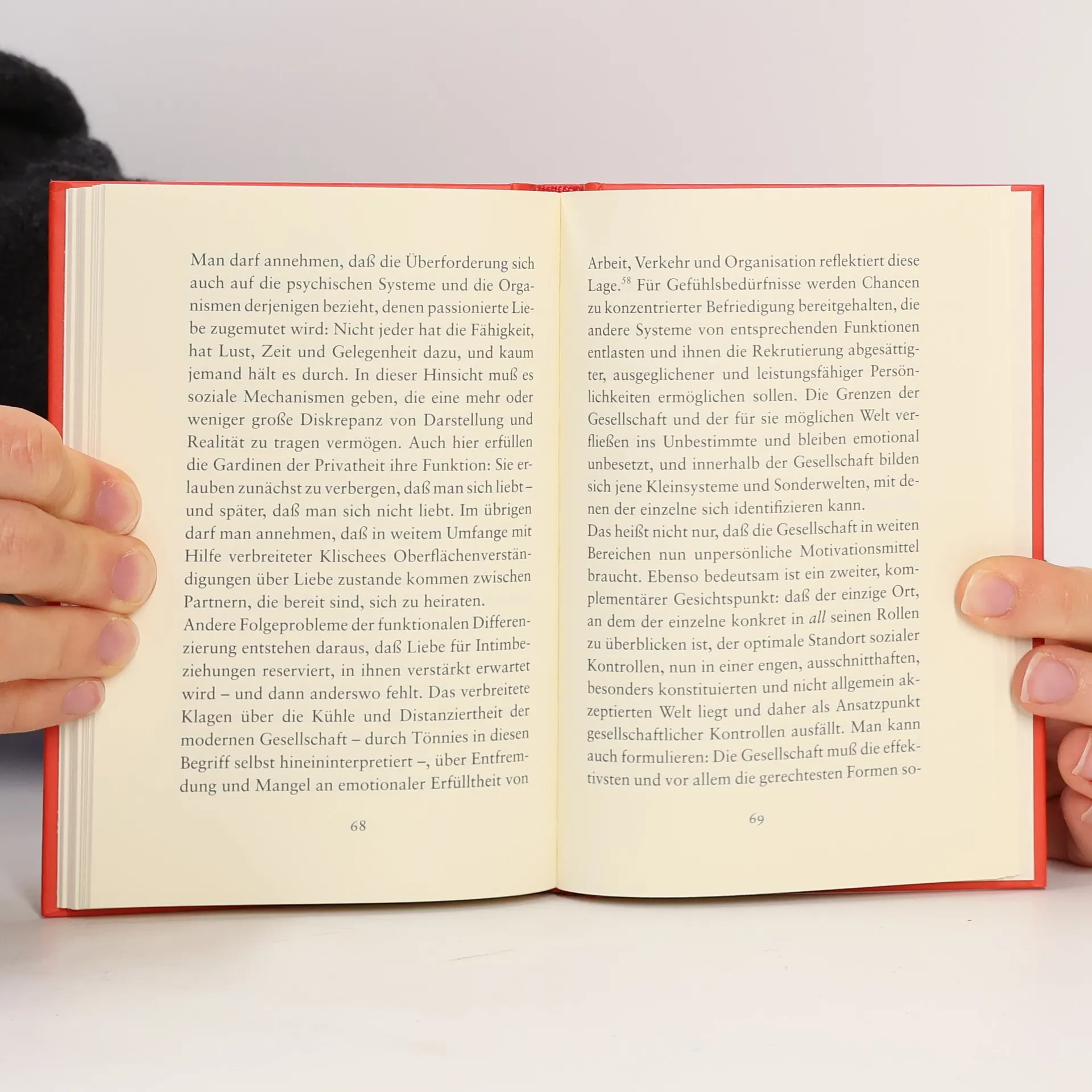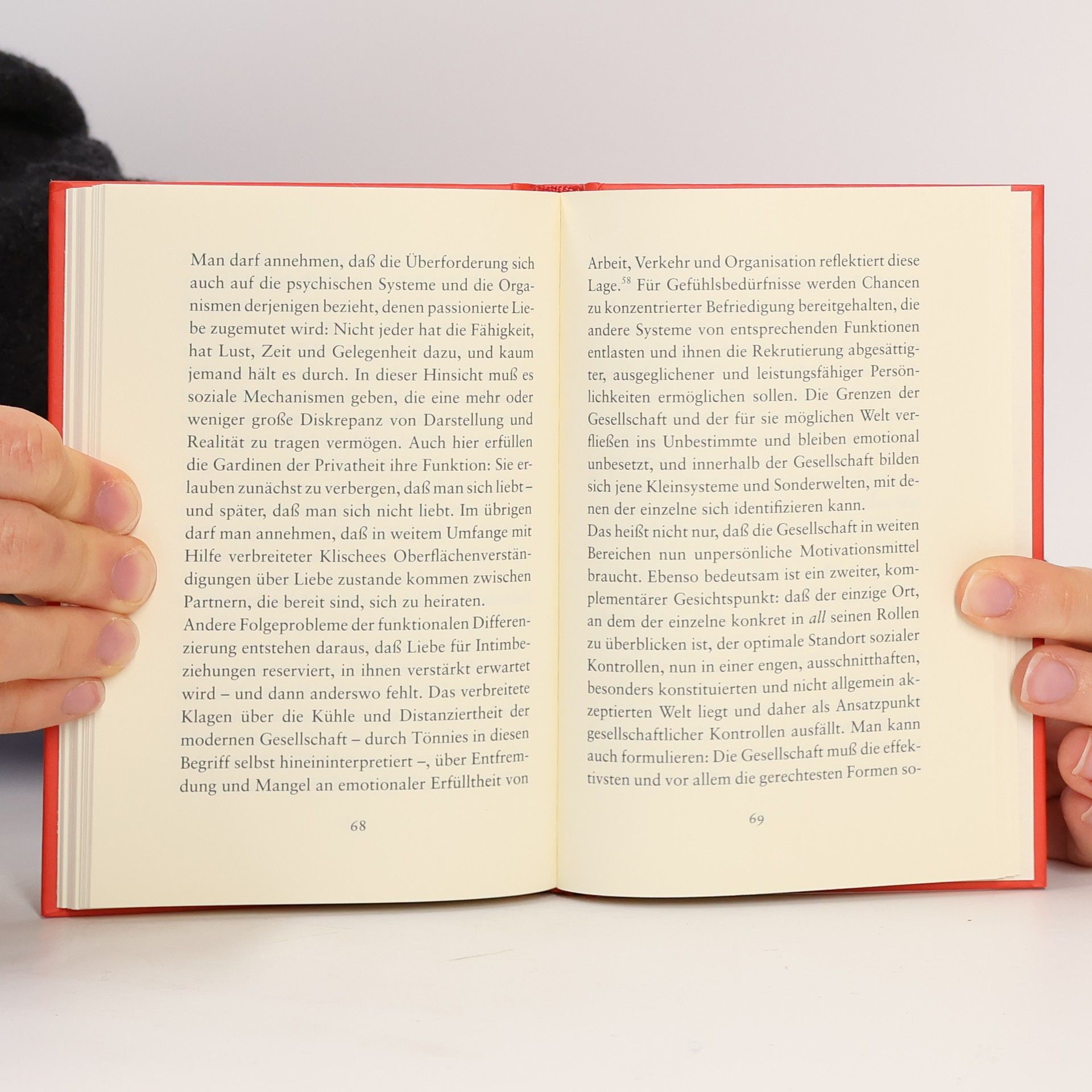 Individuen erkennt man daran, dass sie einen Knick in der Optik haben, wodurch sie öffentlichen Dingen und Ereignissen einen persönlichen, oft verborgenen Sinn verleihen. Diese individuelle Wahrnehmung kann dazu führen, dass das Verhalten anderer, wie die Langsamkeit eines Mitmenschen, als Ausdruck der eigenen Ungeduld interpretiert wird. Diese Art des Erlebens ist nicht immer konsensfähig. Es kann jedoch vorkommen, dass jemand, anstatt einfach abzulehnen, sich in die eigene Perspektive hineinversetzt und diese durch eigenes Handeln bestätigt. Wenn er schneller handelt, anstatt Ungeduld zu zeigen, wird die eigene Wahrnehmung zwar weiterhin als unmaßgeblich betrachtet, gewinnt aber für diesen anderen eine motivierende Kraft. Dies erleichtert es, authentisch zu sein. Niklas Luhmann sieht in dieser Bestätigung fremden Erlebens durch Handlungen die kommunikative Grundlage für das, was wir Liebe nennen. Sein 1982 erschienener Klassiker beleuchtet die Ideengeschichte des Themas. Der nun edierte Aufsatz, ursprünglich 1969 für eines der ersten Bielefelder Seminare verfasst, behandelt die Liebe ohne akademischen Ballast und bietet eine klare, prägnante Darstellung der bis heute einzigartigen soziologischen Theorie der Liebe.