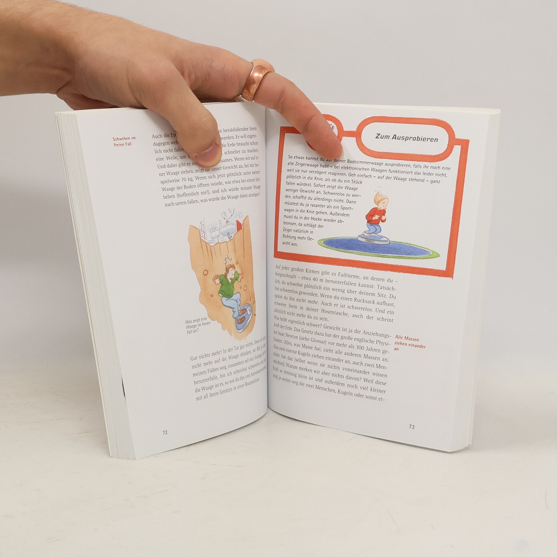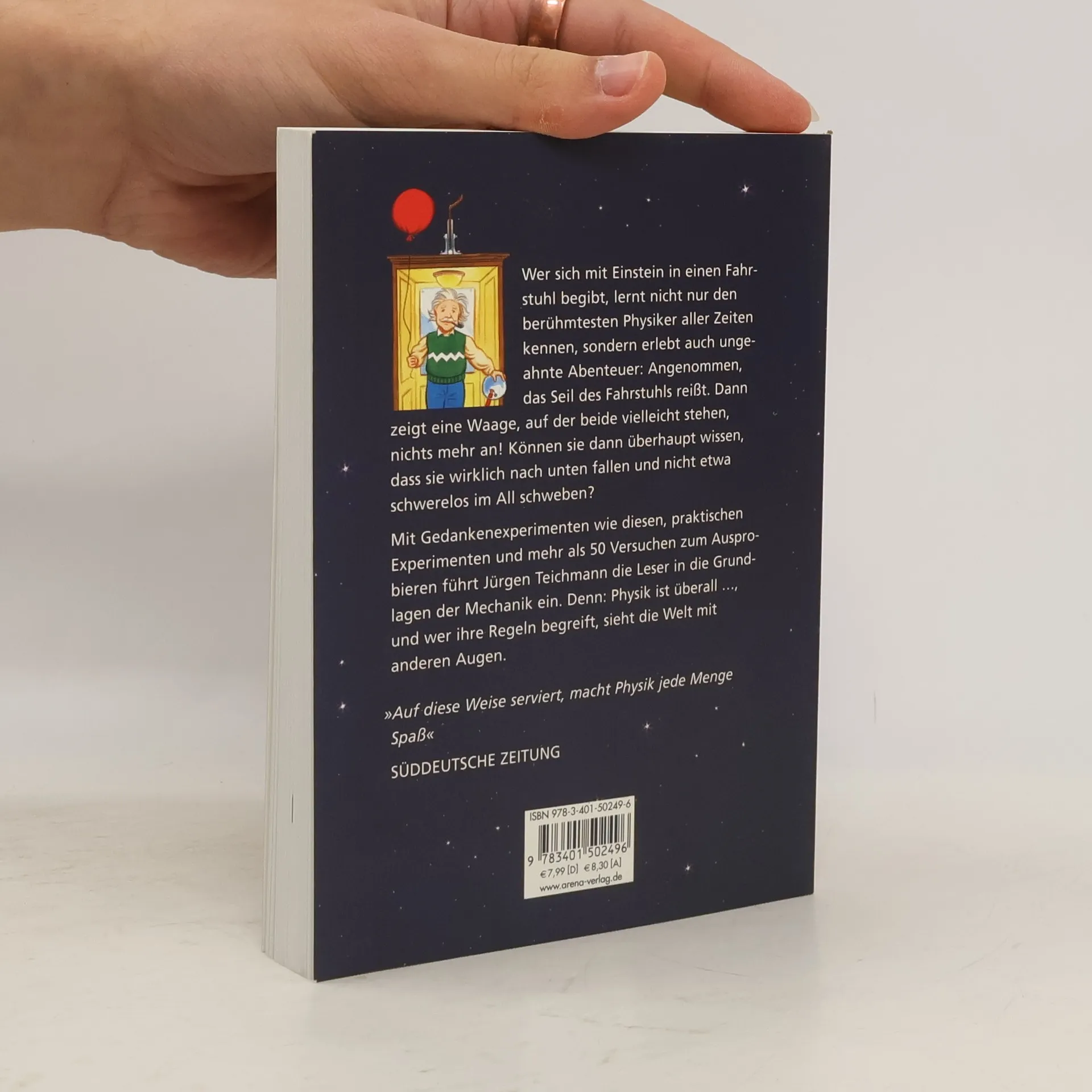 Wer sich mit Einstein in einen Fahrstuhl begibt, lernt nicht nur den berühmtesten Physiker aller Zeiten kennen, sondern erlebt auch ungeahnte Abenteuer: Angenommen, das Seil des Fahrstuhls reißt. Dann zeigt eine Waage, auf der beide vielleicht stehen, nichts mehr an! Können sie dann überhaupt wissen, dass sie wirklich nach unten fallen und nicht etwa schwerelos im All schweben?