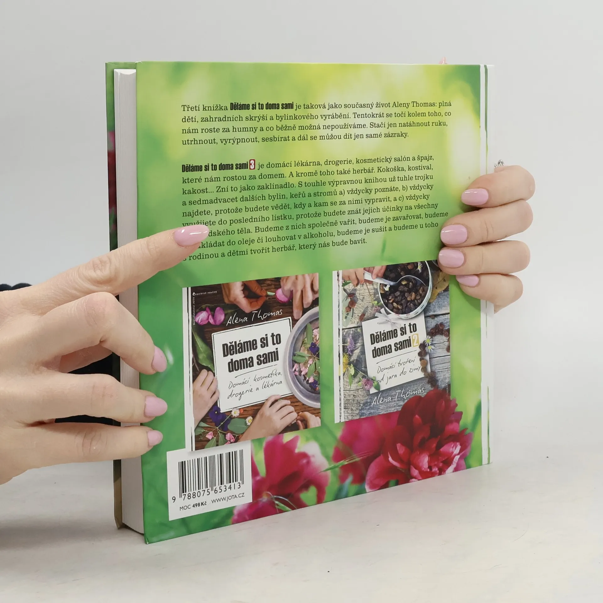 Rosteme, zrajeme, rozrůstáme se. Třetí knížka Děláme si to doma sami je taková jako naše současné životy, plná dětí, zahradních skrýší a bylinkového vyrábění. Tentokrát se točí kolem toho, co nám roste kolem našich domů a co běžně třeba nepoužíváme. Když člověk ví, stačí pak natáhnout ruku, utrhnout, vyrýpnout, sesbírat a dál se můžou dít jen samé zázraky. Děláme si to doma sami 3 je domácí lékárna, drogerie, kosmetický salón a špajz, co nám roste za domem. A kromě toho také herbář. Kozlík, kostival, kakost… Zní to jako zaklínadlo. S touhle výpravnou knihou už tuhle trojku a čtyřicítku dalších bylin, keřů a stromů a) vždycky poznáte, b) vždycky najdete, protože budete vědět, kdy a kam se za nimi vypravit a c) vždycky využijete do posledního lístku, protože budete vědět, jaké mají účinky a na jakou část lidského těla jejich sílu zacílit. Budeme z nich vařit, budeme je zavařovat, budeme je nakládat do oleje či louhovat v alkoholu, budeme je sušit a budeme u toho s rodinou a dětmi tvořit herbář, který nás bude bavit.