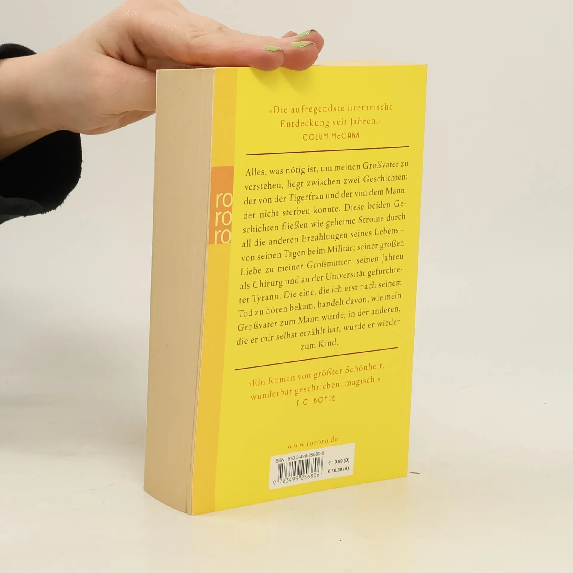 Alles, was nötig ist, um meinen Großvater zu verstehen, liegt zwischen zwei Geschichten: der von der Tigerfrau und der von dem Mann, der nicht sterben konnte. Diese beiden Geschichten fließen wie geheime Ströme durch all die anderen Erzählungen seines Lebens – von seinen Tagen beim Militär; seiner großen Liebe zu meiner Großmutter; seinen Jahren als Chirurg und an der Universität gefürchteter Tyrann. Die eine, die ich erst nach seinem Tod zu hören bekam, handelt davon, wie mein Großvater zum Mann wurde; in der anderen, die er mir selbst erzählt hat, wurde er wieder zum Kind.