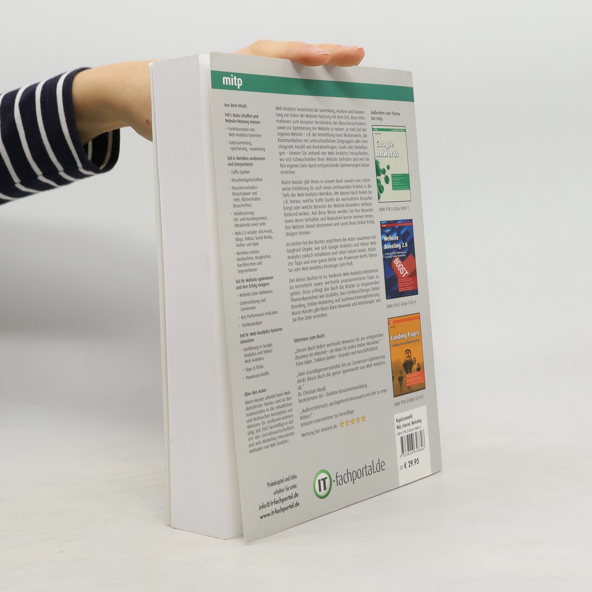 Um aus Web Analytics einen wirklichen Mehrwert ziehen zu können, benötigt man fundiertes Wissen. Marco Hassler gibt dem Leser in seinem Buch einen umfassenden Einblick in Web Analytics. Er zeigt detailliert, wie das Verhalten der Besucher analysiert wird, welche Metriken wann sinnvoll angewendet werden können und wie die verschiedenen Elemente einer Website wie Gestaltung, Inhalt oder Navigation hinterfragt werden. Darüber hinaus geht er darauf ein, wie die Auswertungsergebnisse dafür genutzt werden können, um einen Webauftritt zu verbessern und zu optimieren. Die 2. Auflage ist erweitert worden um eine ausführliche Anleitung zu Google Analytics sowie das Thema Social Media. Schnell erklärt: Web Analytics bezeichnet die Datensammlung und Auswertung des Verhaltens von Besuchern auf Ihrer Website Metriken, auch Kennzahlen genannt, sind Zahlen, die quantitativ messbare Sachverhalte in aussagekräftiger, komprimierter Form wiedergeben. Zu den Standardmetriken bei Web Analytics gehören u. a. die Anzahl von Seitenaufrufen und Besuchern.