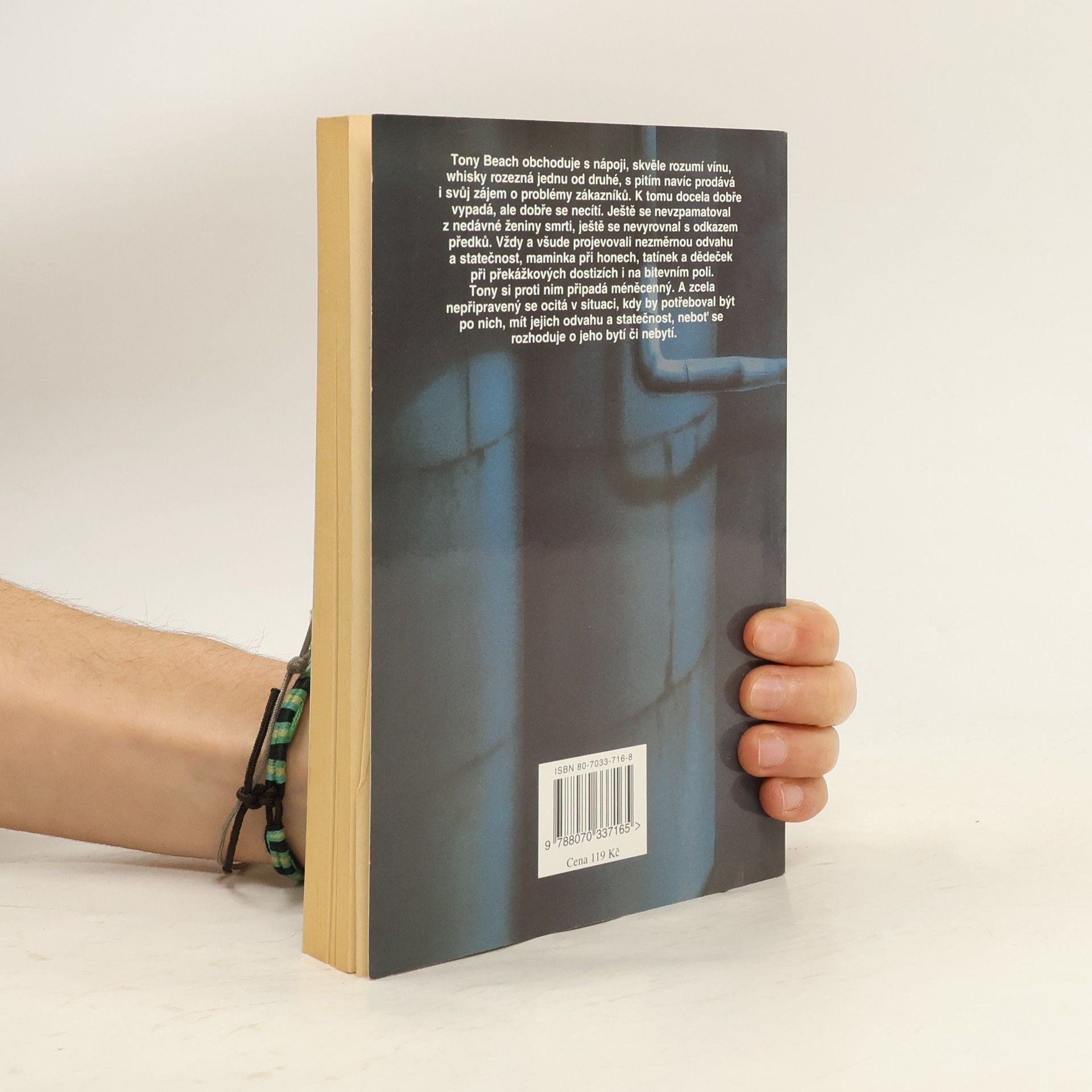 Tony Beach má obchod s nápoji, skvěle rozumí vínu, whisky rozezná jednu od druhé, s pitím prodává i svůj zájem o problémy zákazníků. Vlastní potíže si nechává pro sebe, ačkoli nejsou malé: ještě se nevzpamatoval z ženiny smrti, ještě se nevyrovnal s odkazem svých předků. Vždycky a všude – maminku při honech, tatínka a dědečka při překážkových dostizích i na bitevním poli – je provázela nezměrná statečnost a odvaha, vlastnosti, jichž si Tony velice váží, ale u sebe je postrádá. A zcela nepřipraven se ocitá v situaci, kde by je tolik potřeboval, kdy osud rozhoduje o jeho bytí či nebytí.