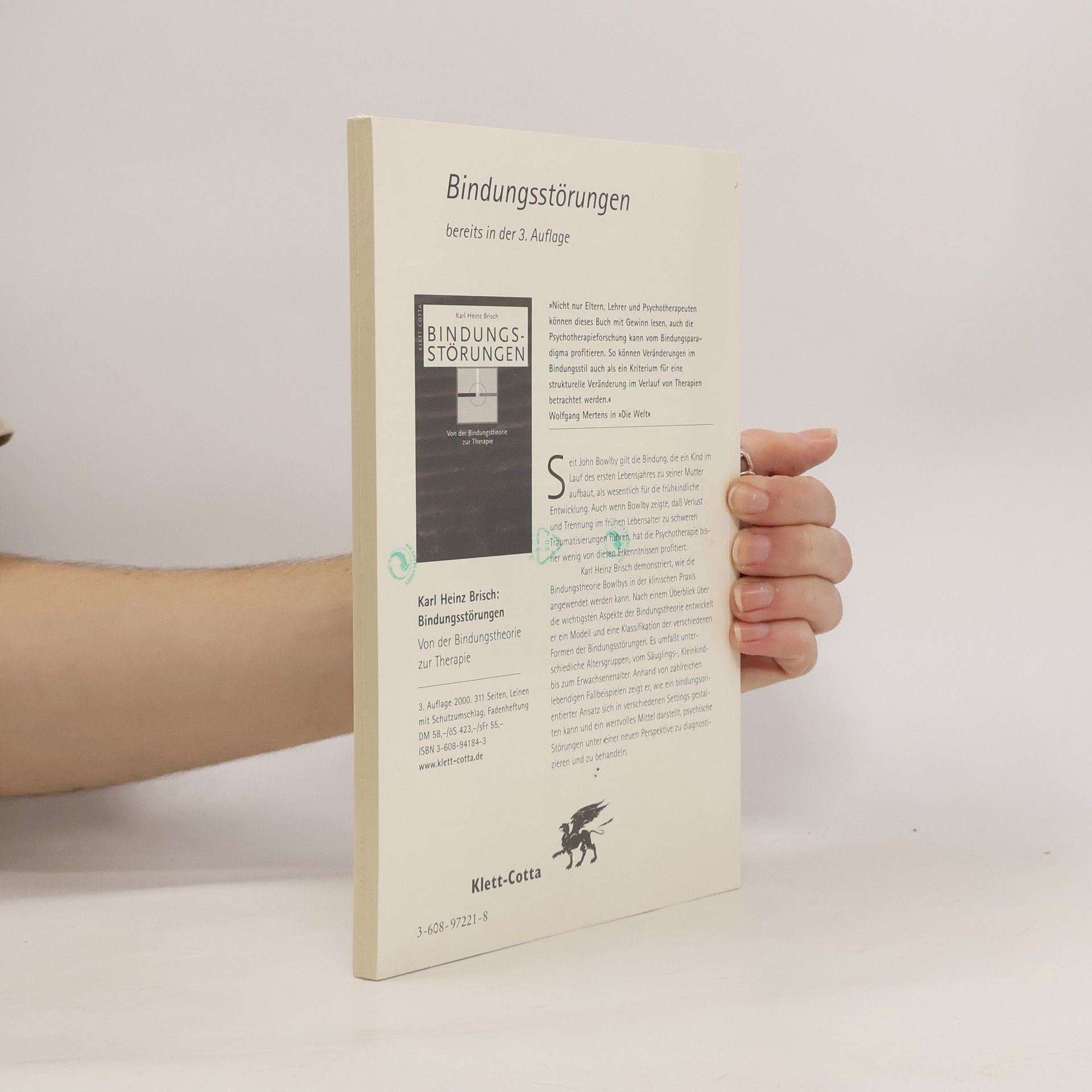 Inhaltsübersicht: Danksagung, Vorworte, Einleitung, 1. Die Bindungstheorie und ihre Konzepte, 2. Bindungsstörungen, 3. Bindungstherapie, 4. Behandlungsbeispiele aus der klinischen Praxis, 5. Ausblick auf weitere Anwendungsgebiete der Bindungstheorie, Anhang.