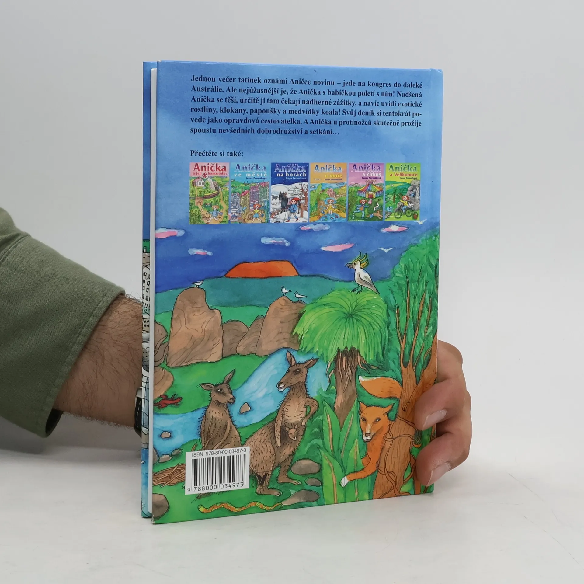 Jednou večer tatínek oznámí Aničce novinu – jede na kongres do daleké Austrálie. Ale nejúžasnější je, že Anička s babičkou poletí s ním! Nadšená Anička se těší, určitě ji tam čekají báječné zážitky, a navíc uvidí exotické rostliny, klokany, papoušky a medvídky koala! Svůj deník si tentokrát povede jako opravdová cestovatelka. A Anička u protinožců skutečně prožije spoustu nevšedních dobrodružství a setkání…