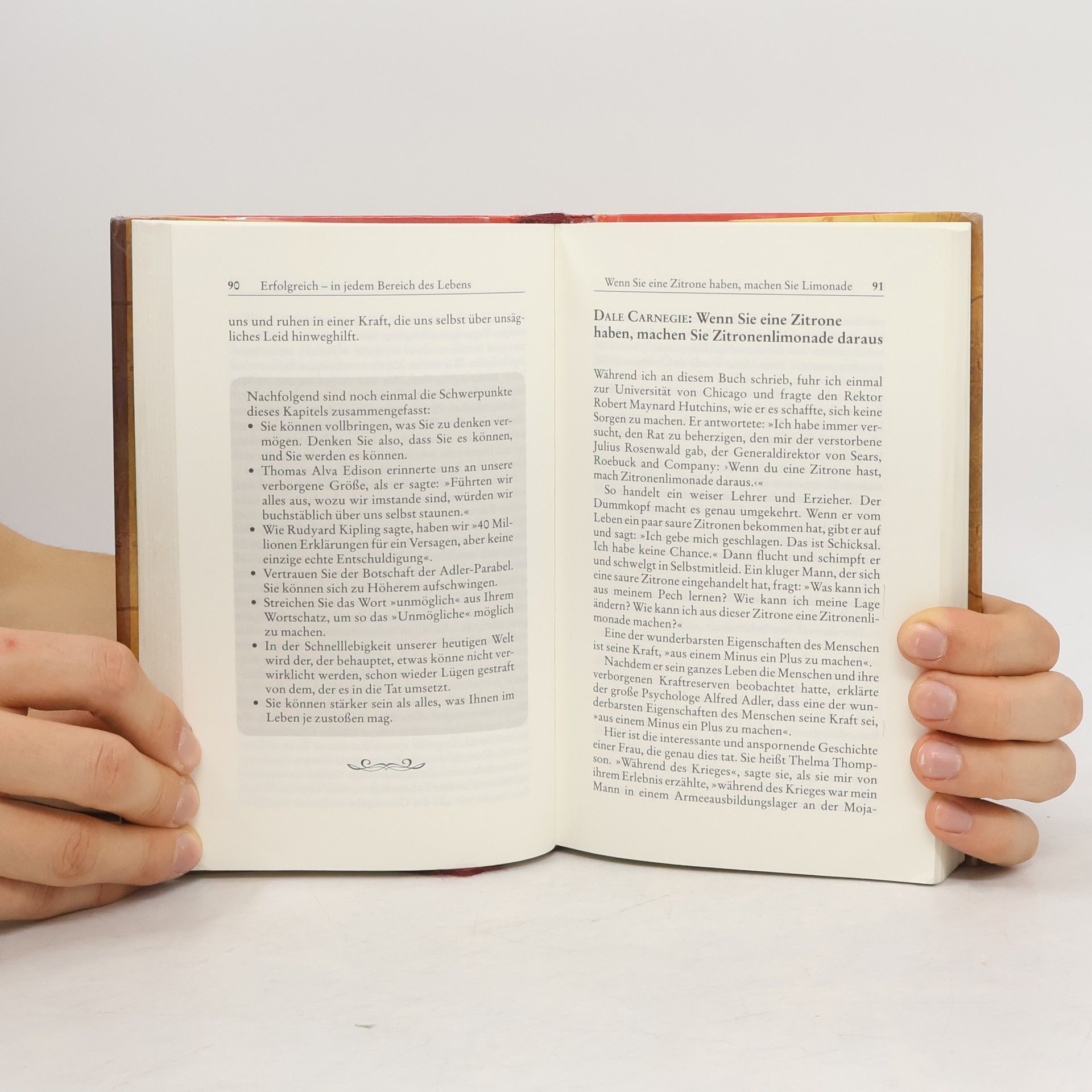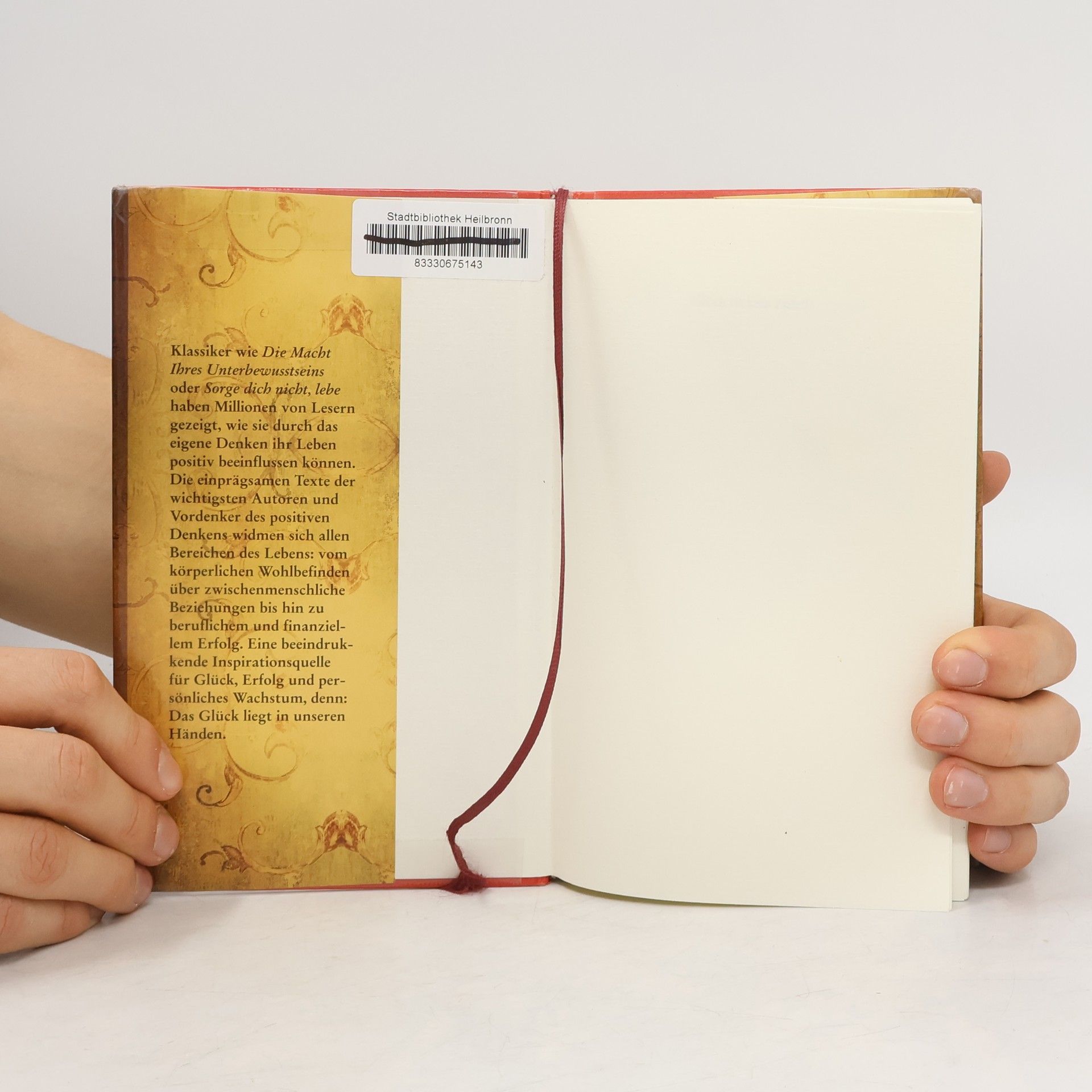 Das Geheimnis des Glücks Die Suche nach Glück, Erfolg und Zufriedenheit beschäftigt die Menschen seit jeher und Klassiker wie „Die Macht Ihres Unterbewusstseins“ oder „Sorge dich nicht, lebe“ haben unzähligen Menschen gezeigt, wie sie durch das eigene Denken ihr Leben positiv beeinflussen können. Dieses umfassende Lesebuch versammelt die inspirierendsten Texte zum positiven Denken – mit Bestseller-Autoren wie Dr. Joseph Murphy, Louise L. Hay, Napoleon Hill oder Dale Carnegie. Der Schlüssel zu Glück und Erfolg liegt in unserem eigenen Denken: Menschen, die positiv denken, sind in der Lage, Schwächen in Stärken umzuwandeln und Herausforderungen mit Enthusiasmus zu meistern. Diese Sammlung enthält die Quintessenz des positiven Denkens zu allen wichtigen Bereichen wie Gesundheit, zwischenmenschliche Beziehungen, sowie berufliche Weiterentwicklung und Wohlstand und gibt wertvolle Impulse, wie wir kraft unserer eigenen Gedanken das Unmögliche möglich machen können. Denn: Das Glück liegt in unseren Händen. Die Quintessenz des positiven Denkens.