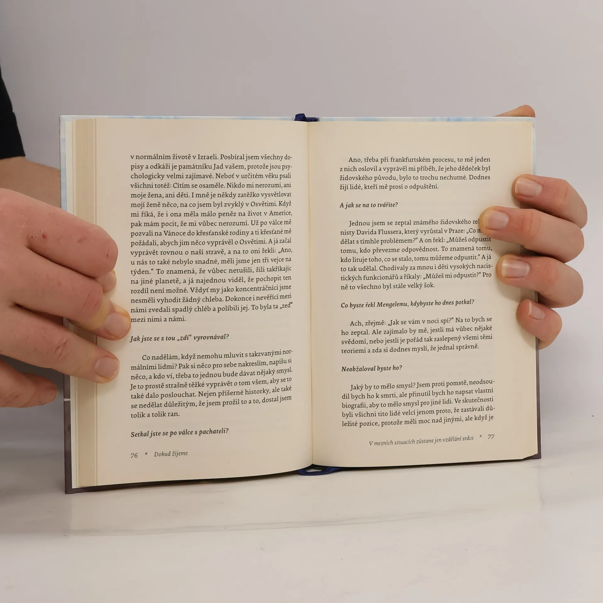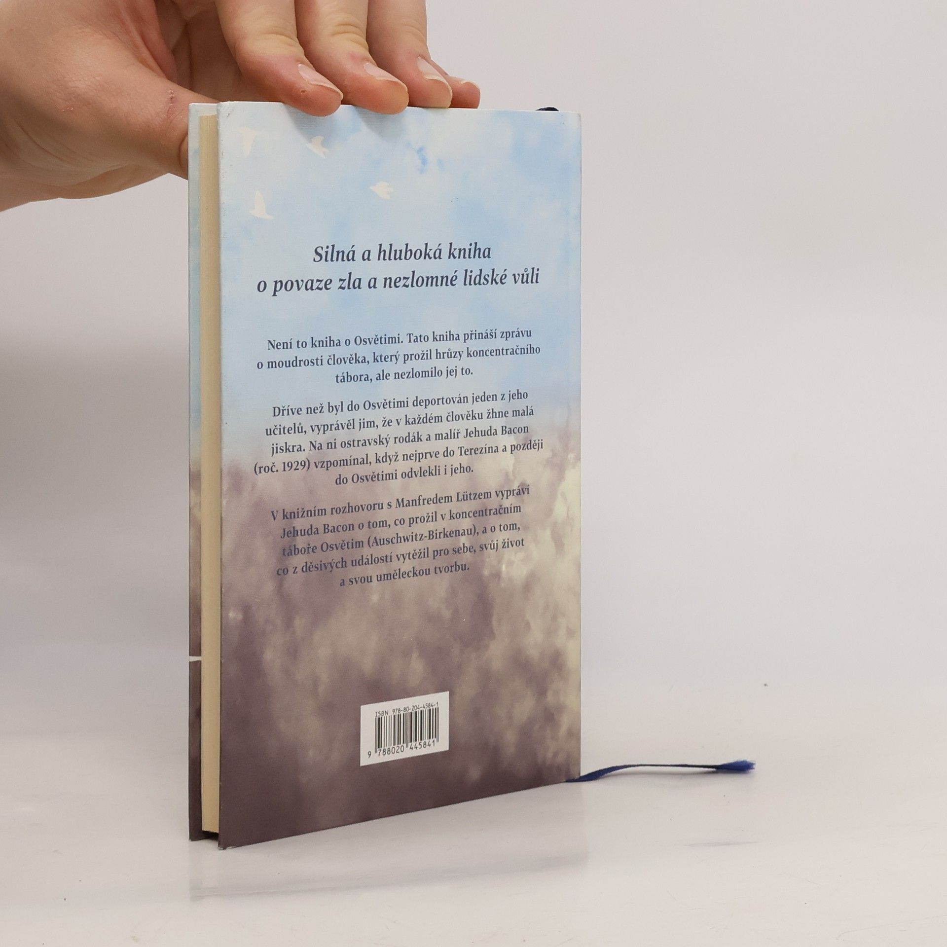 Není to kniha o Osvětimi. Tato kniha přináší zprávu o moudrosti člověka, který prožil hrůzy koncentračního tábora, ale nezlomilo jej to. Dříve než byl do Osvětimi deportován jeden z jeho učitelů, vyprávěl jim, že v každém člověku žhne malá jiskra. Na ni ostravský rodák a malíř Jehuda Bacon vzpomínal, když nejprve do Terezína a později do Osvětimi odvlekli i jeho. V knižním rozhovoru s Manfredem Lützem Jehuda Bacon vypráví o tom, co prožil v koncentračním táboře, a o tom, co z děsivých událostí vytěžil pro sebe, svůj život a svou uměleckou tvorbu.