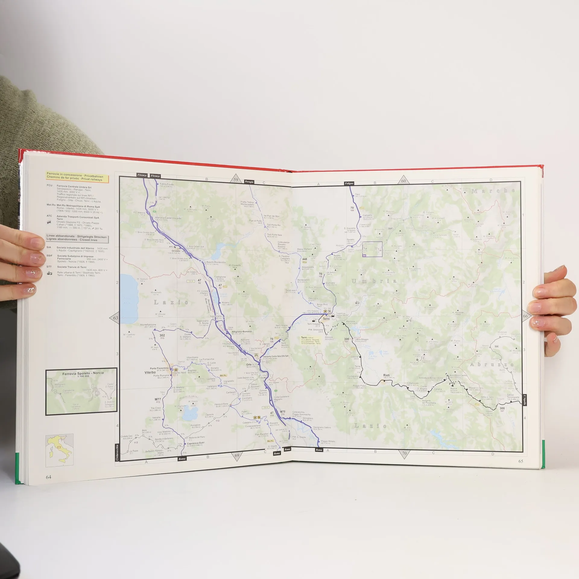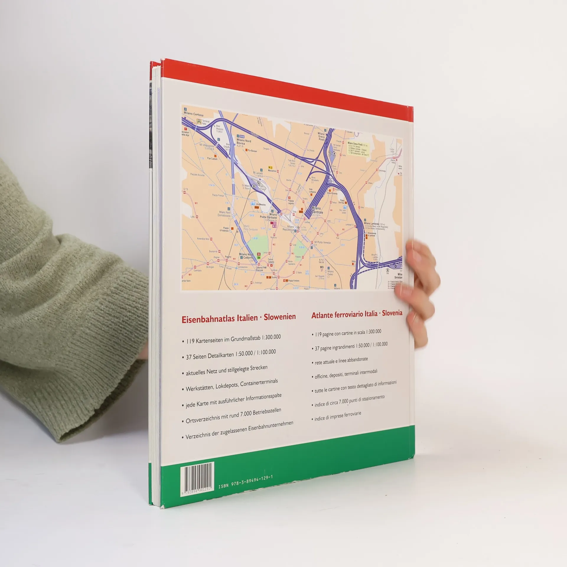 1. Auflage, Januar 2010, Datenstand Dezember 2009 das ganze Bahnnetz Italiens und Sloweniens im Maßstab 1:300.000 37 Detailkarten 1:150.000 bzw. 1:50.000 u. a. von Bari, Brescia, Bologna, Genua, Florenz, Koper, Ljubljana, Livorno, Mailand, Novara, Neapel, Padora, Pisa, ReggioC/Messina, Rom, Turin, Venedig aktuelles Streckennetz, Schmalpurbahnen, stillgelegte und abgebaute Strecken Klare Unterscheidung von elektrifizierten und nicht-elektrizierten Bahnstrecken und der jeweiligen Stromsysteme jedes Kartenblatt mit ausführlicher Informationsspalte ausführliches Ortsverzeichnis Verzeichnis der Eisenbahntunnel Verzeichnis der Bahngesellschaften Legende und Informationsspalte in Deutsch, Italienisch und Englisch