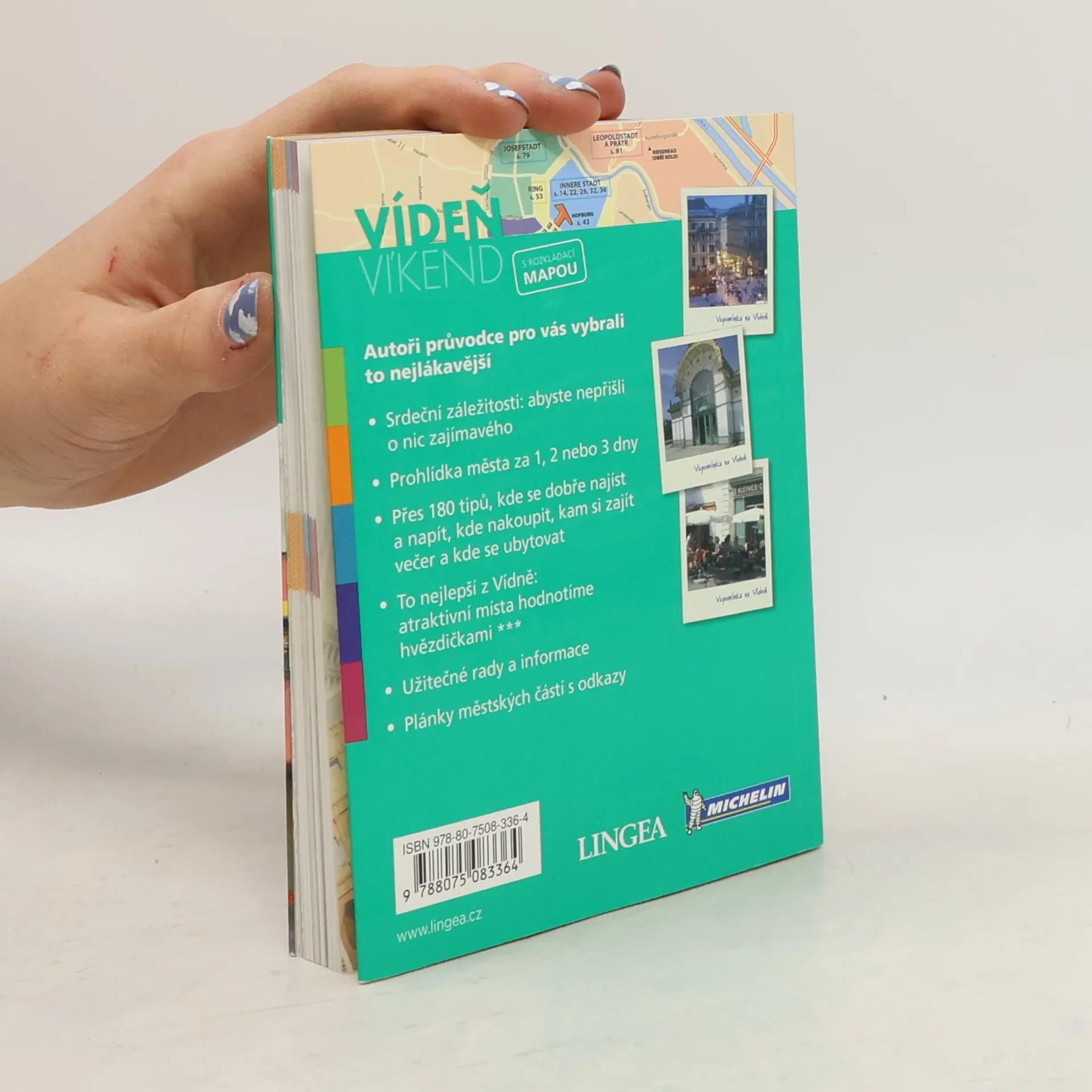 Průvodce Michelin vychází poprvé česky. Vychutnejte si vídeňské památky, romantická zákoutí i skvělou kávu. Kniha bude spolehlivým průvodcem těm, kdo jedou do Vídně poprvé, i zkušeným cestovatelům, kteří zde najdou tipy k návštěvě dalších míst, kulturních akcí nebo kulinářských zážitků. Atraktivní místa hodnotíme hvězdičkami, ale je samozřejmě na vás, čemu dáváte přednost. Vídeň je rozdělena do 18 částí, poznávacích okruhů, nechybí schematická mapka, doporučená místa k občerstvení i aktivnímu odpočinku. Jedna část se věnuje i okolí Vídně. Knihu doplňují různé zajímavosti z oblasti historie, současnosti, kultury i gastronomie. Pod klopami obálky najdete mapku městských částí, rozkládací mapu města a plán sítě veřejné dopravy. Nechybí ani základní slovníček a fráze. Ponořte se do historie, zajděte si do muzea, na výstavu, načerpejte síly na procházkách, projeďte se na kole, zajděte do zábavního parku nebo se oddejte se rytmu vídeňských valčíků. Nezapomeňte ochutnat vídeňkou kávu a slavný čokoládový dort Sachertorte. Milovníci čokolády, zmrzliny a zákusků se tu vůbec budou cítit jako v ráji. Sladkosti jsou silnou stránkou vídeňské kuchyně. Ale na své si přijdou samozřejmě i milovníci dalších kulinářských specialit. Náš průvodce vám bude na cestě za zážitky inspirací a rád vás kamkoli doprovodí.