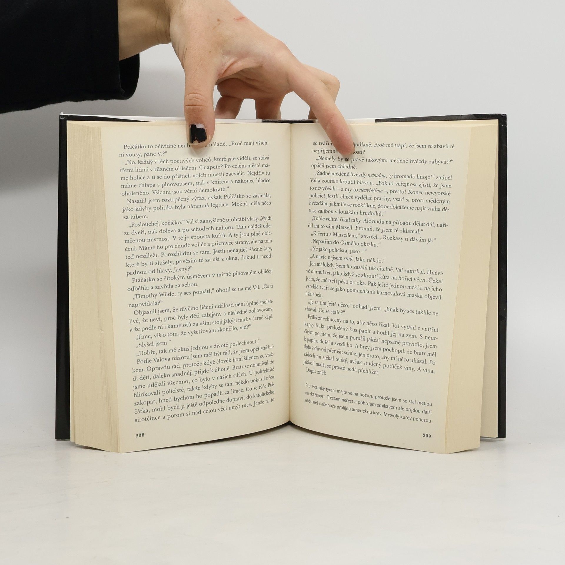 Špičkové historické krimi, jehož autorka, vybavená perfektní znalostí místa a doby, rekonstruuje fascinující obraz New Yorku poloviny 19. století a přivádí na scénu originálního detektiva, který se specializuje na řešení zdánlivě nevysvětlitelných případů. Když Timothymu Wildovi jeho nezdárný starší bratr, známá postava dobového New Yorku, dohodí místo u právě vznikajícího policejního sboru, mladý muž s nechutí, ale přesto úkol přijme. A zdá se, že v pravý čas. Nezletilá dívenka Bird, prchnuvší z bordelu, je nalezena ve špíně ulice celá pokrytá krví, která není její. Začínají se dít podivné věci, až nakonec Wilde s pomocníky objeví v odlehlém koutu Manhattanu hrozivý masový hrob znetvořených dětských těl.